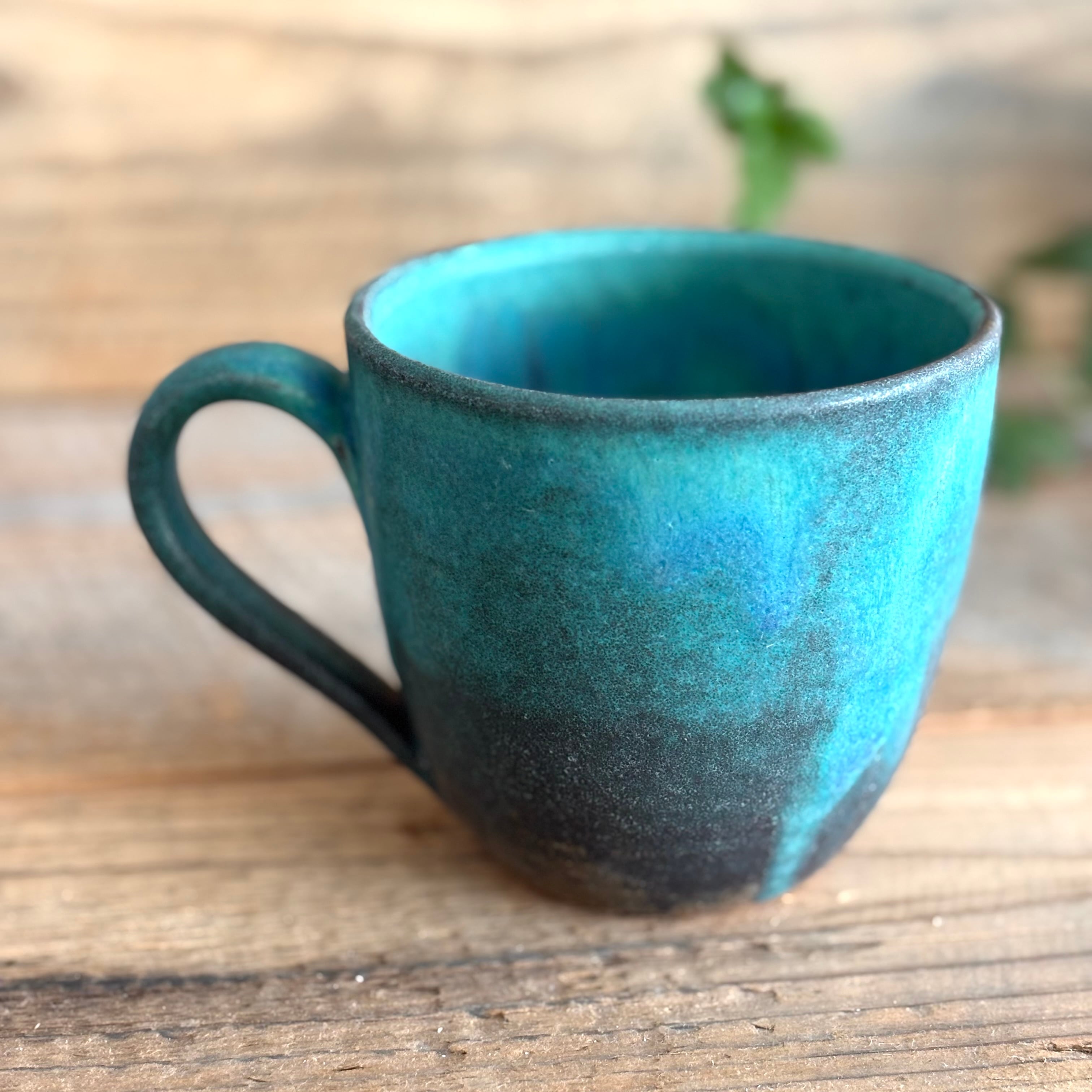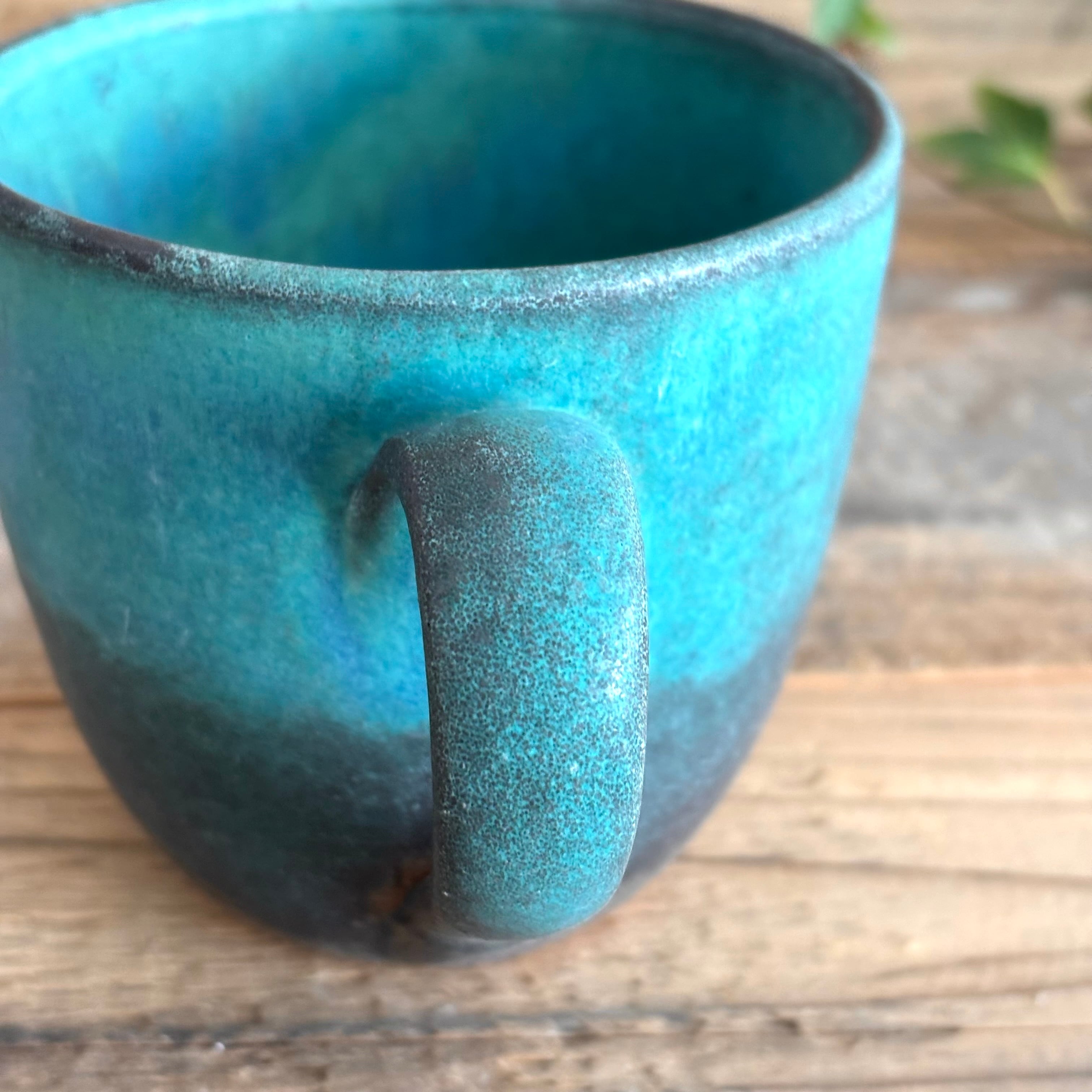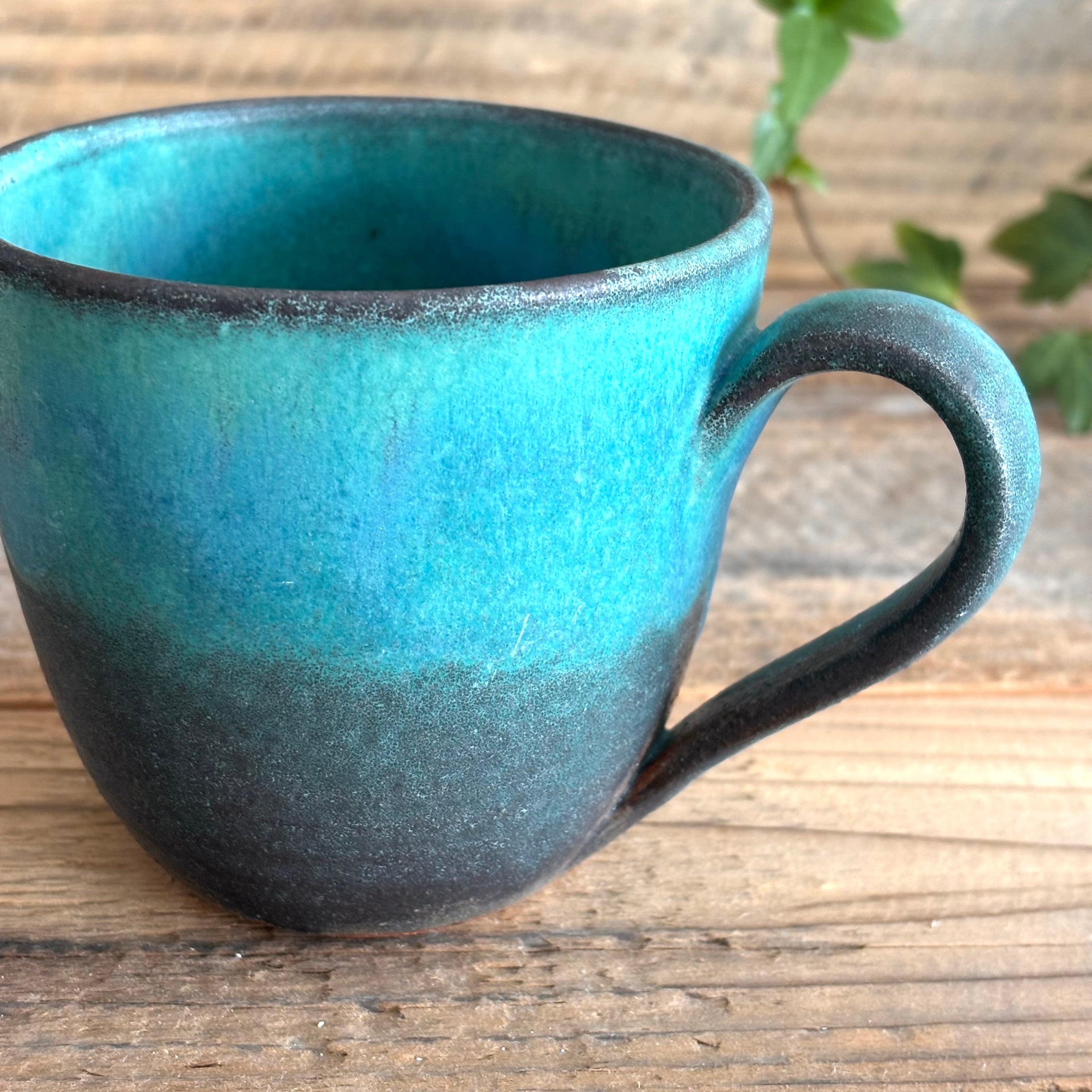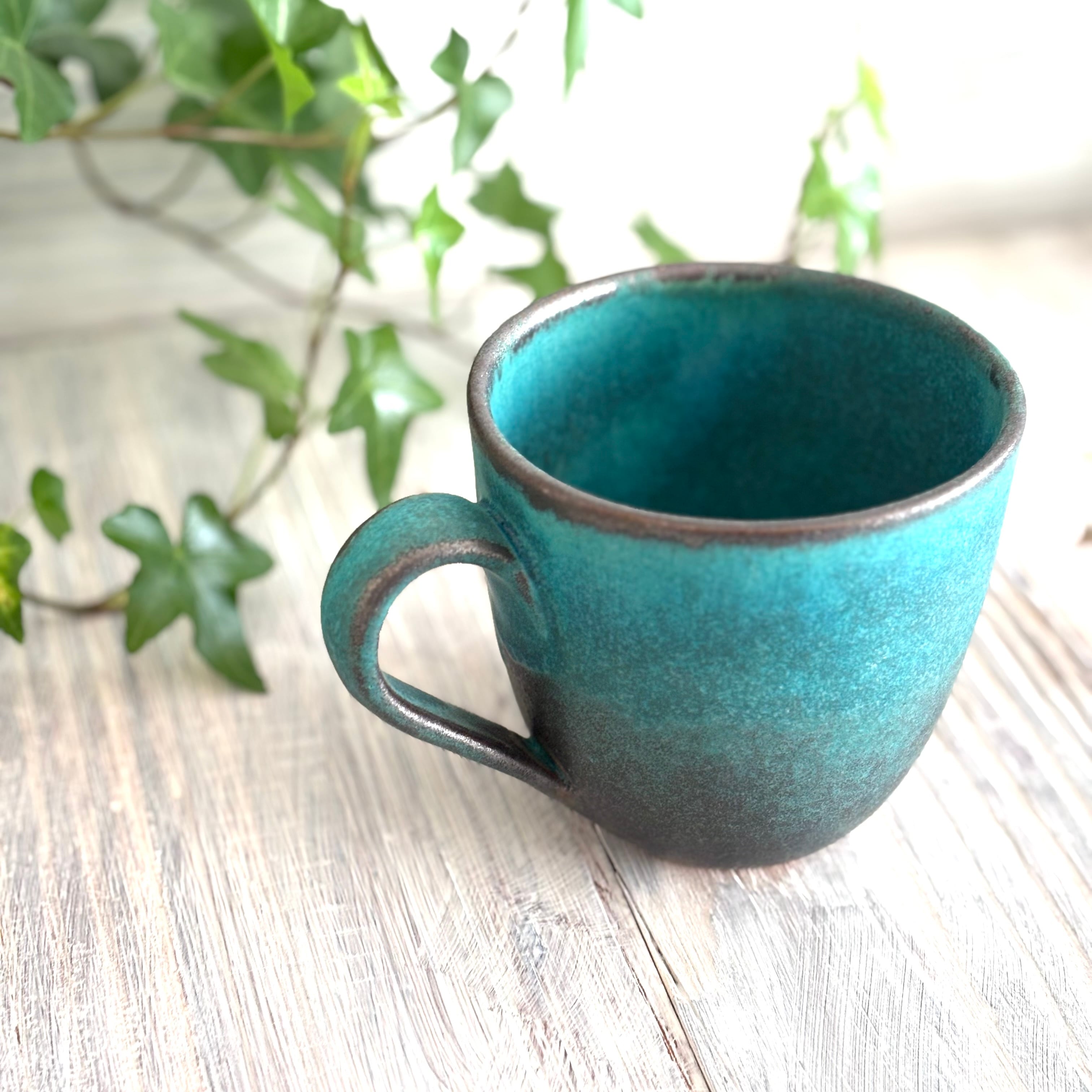 カップが美しく見えるようバランスを取りながら、職人の手でひとつひとつ丁寧に作陶しました。釉薬の自然な流れや色ムラによるシャビーシックな風合いが魅力。