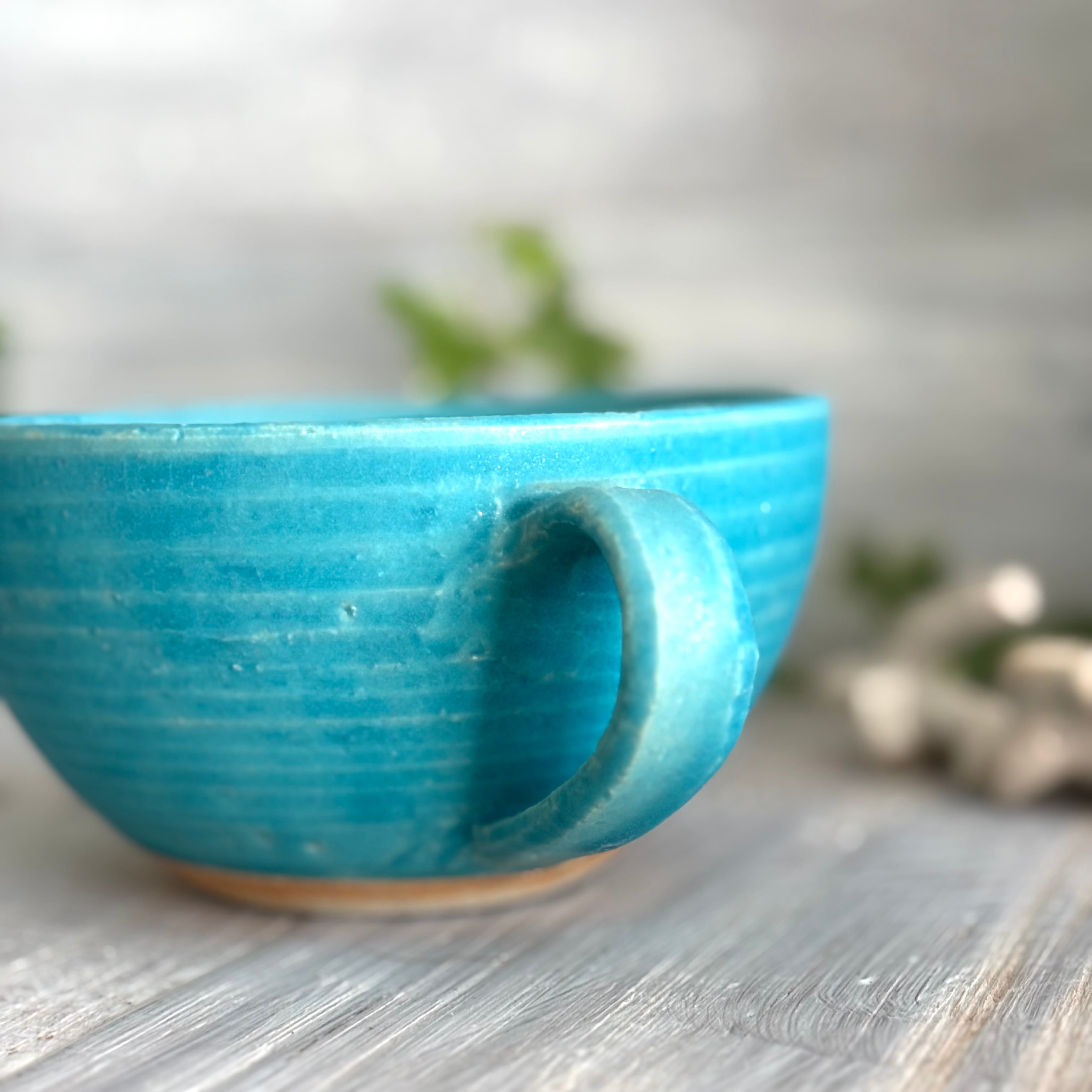 色鮮やかなマットのトルコブルーが特徴のスープカップです。
