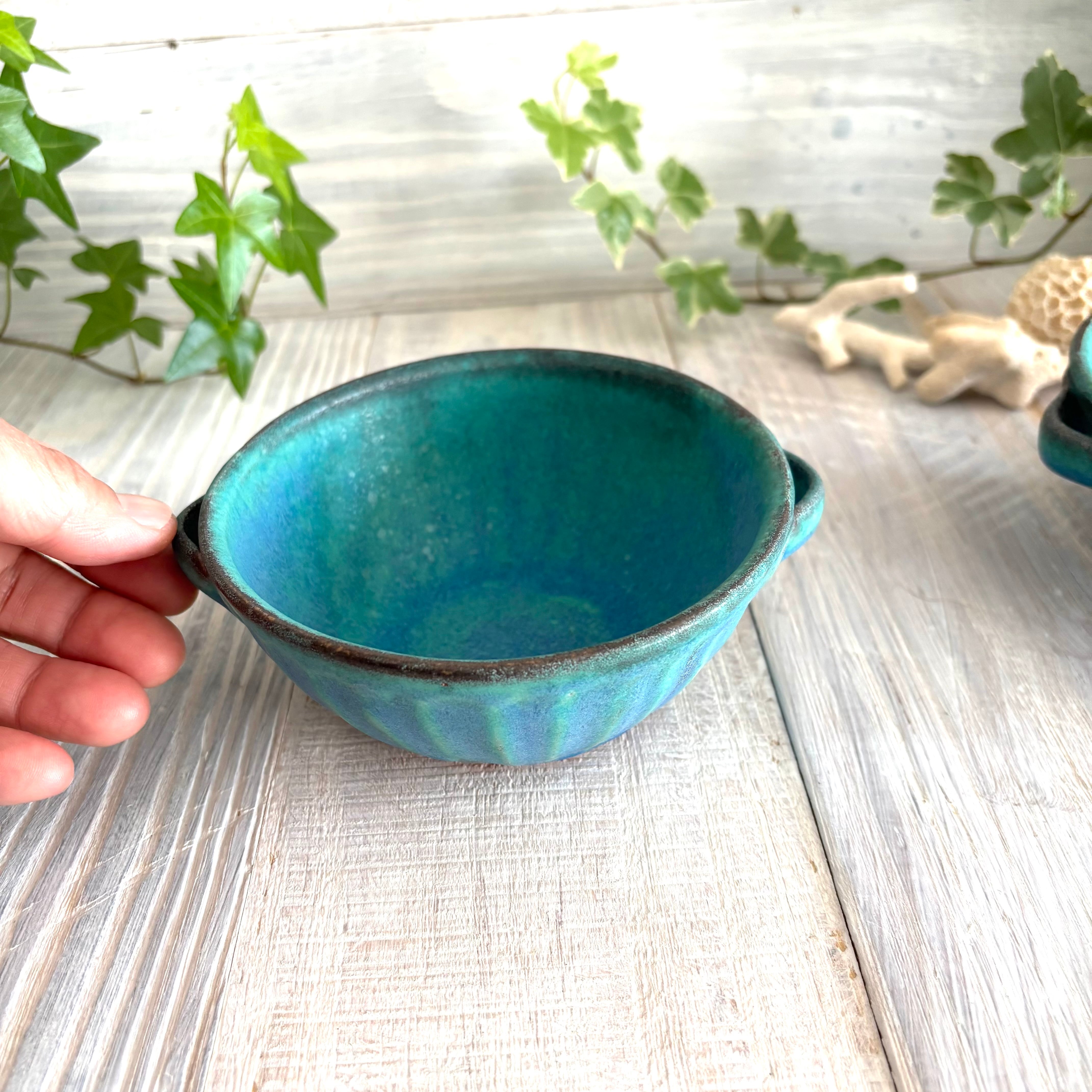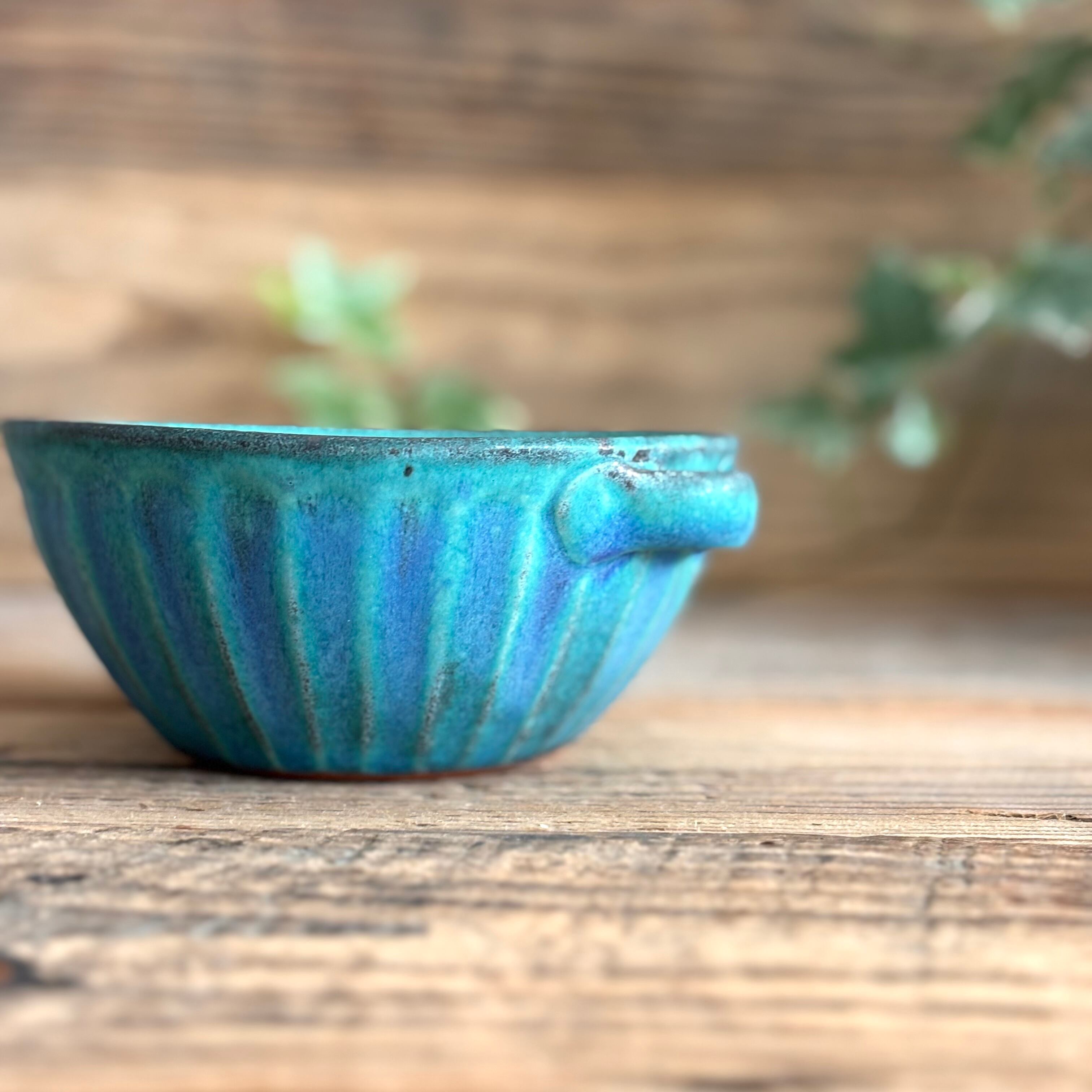 美しいターコイズブルーの色合いが人気の益子焼のシャビーターコイズシリーズ。ナチュラルでシンプルなデザインは、おしゃれなおうちカフェ時間を演出します。小鉢やミニボウルとしても使える優れもの。毎日の食卓が一層華やかになります。手付きで持ちやすく、使い勝手も抜群です。釉薬の自然な流れや色ムラによるシャビーシックな風合いが魅力。