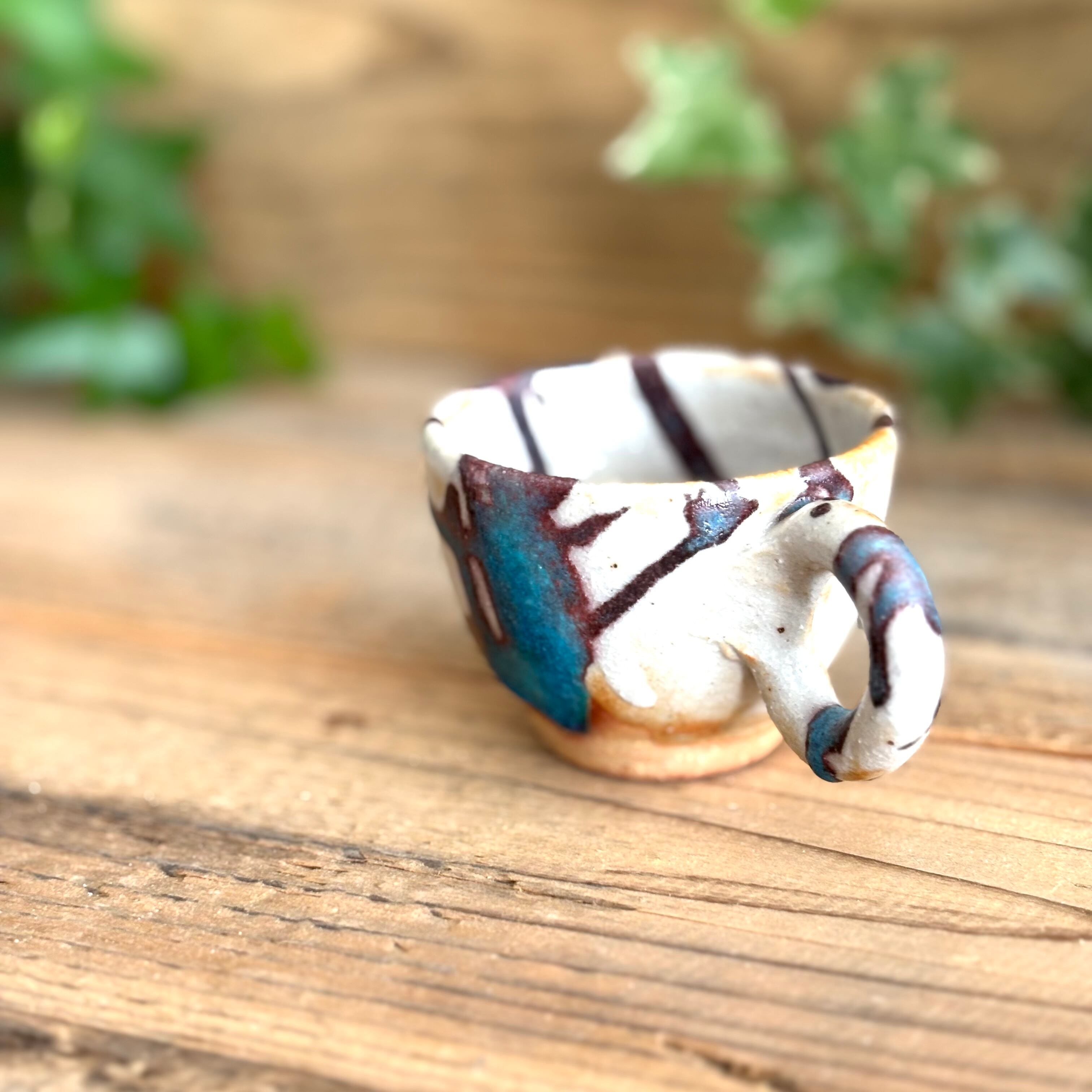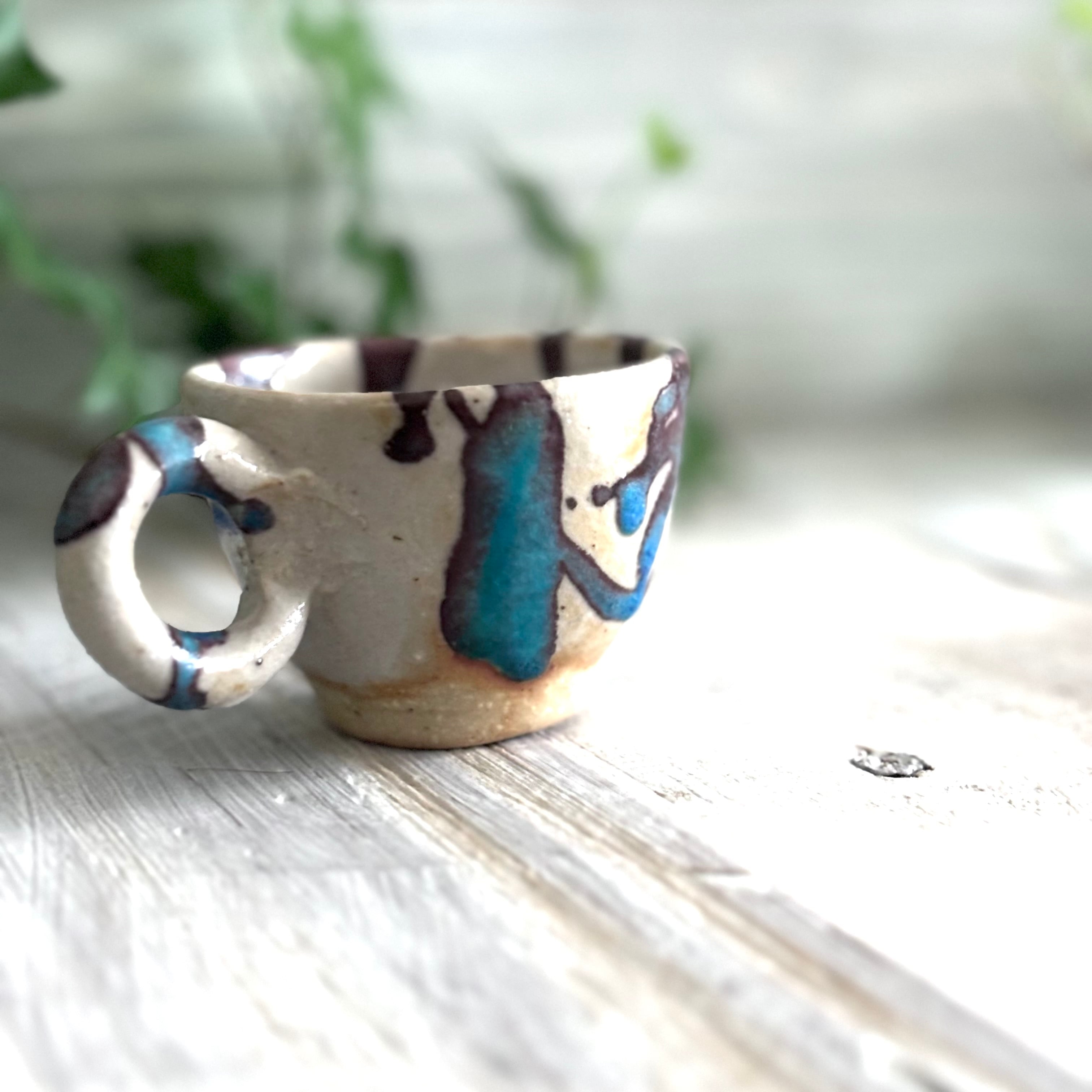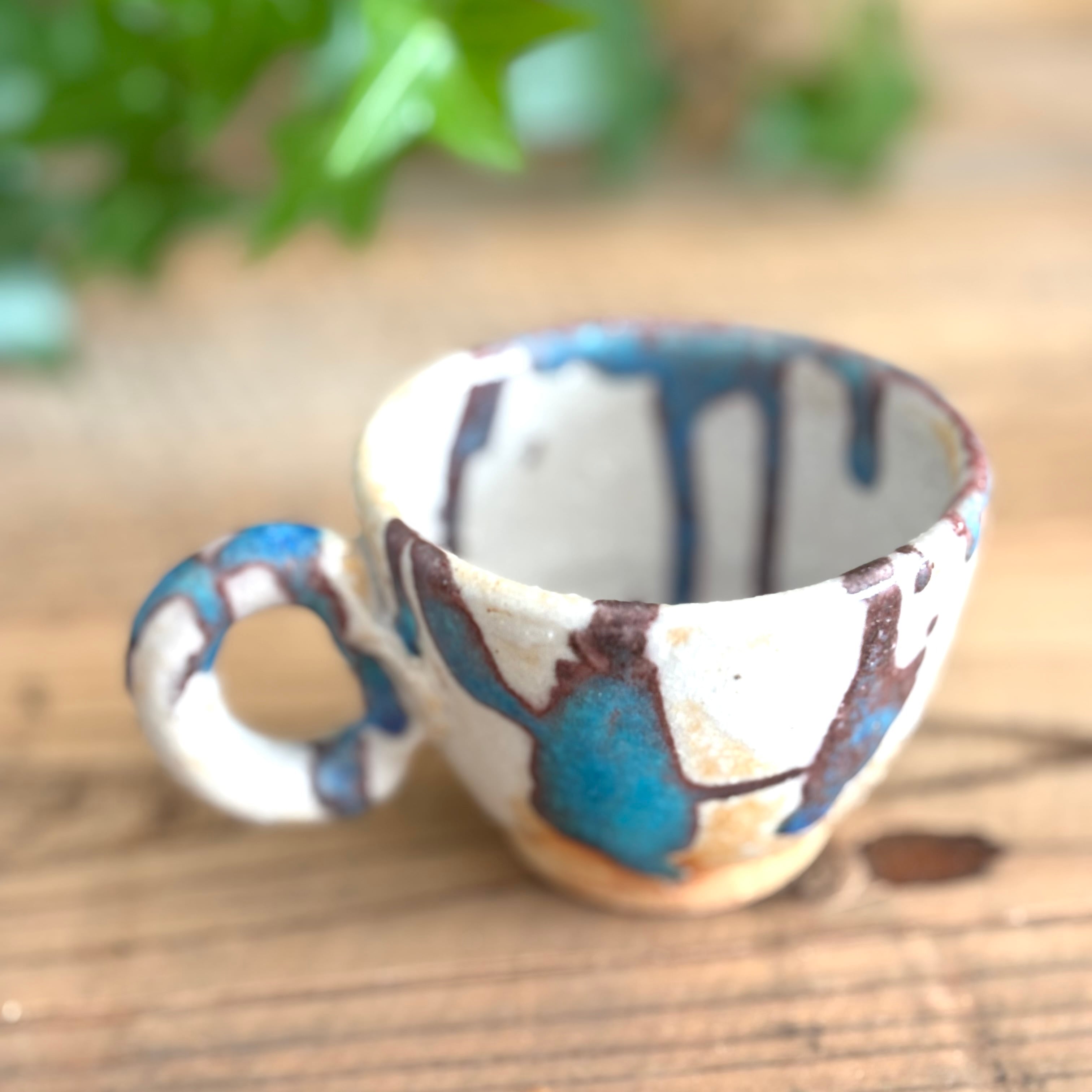 色鮮やかなトルコブルーがランダムに入った氷河シリーズのエスプレッソカップ。取っ手にアクセントのあるかわいいデミタスカップです。信楽焼は、滋賀県甲賀市信楽町でつくられているやきもの。日本六古窯の一つと数えられ、1260年もの永い歴史があるといわれています。