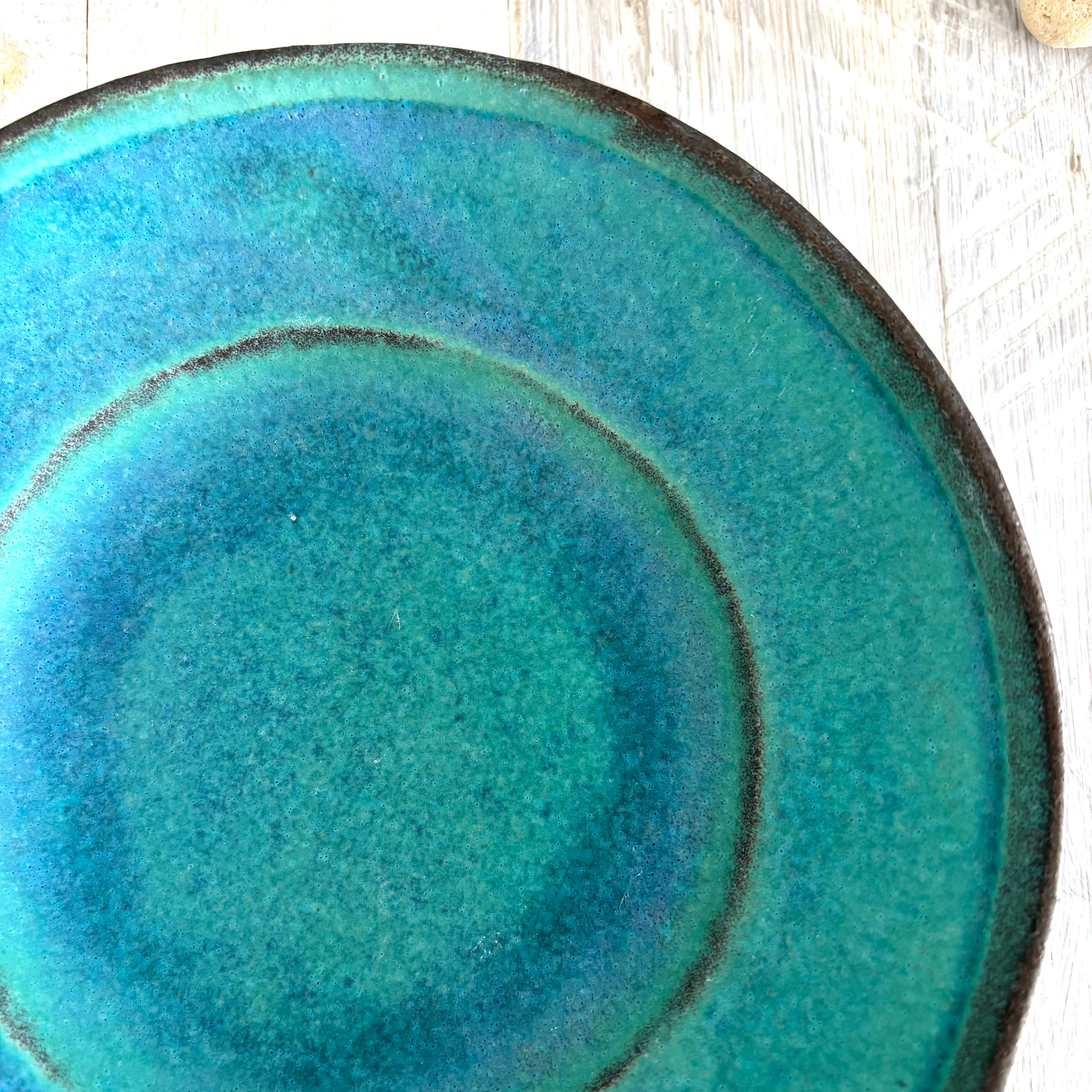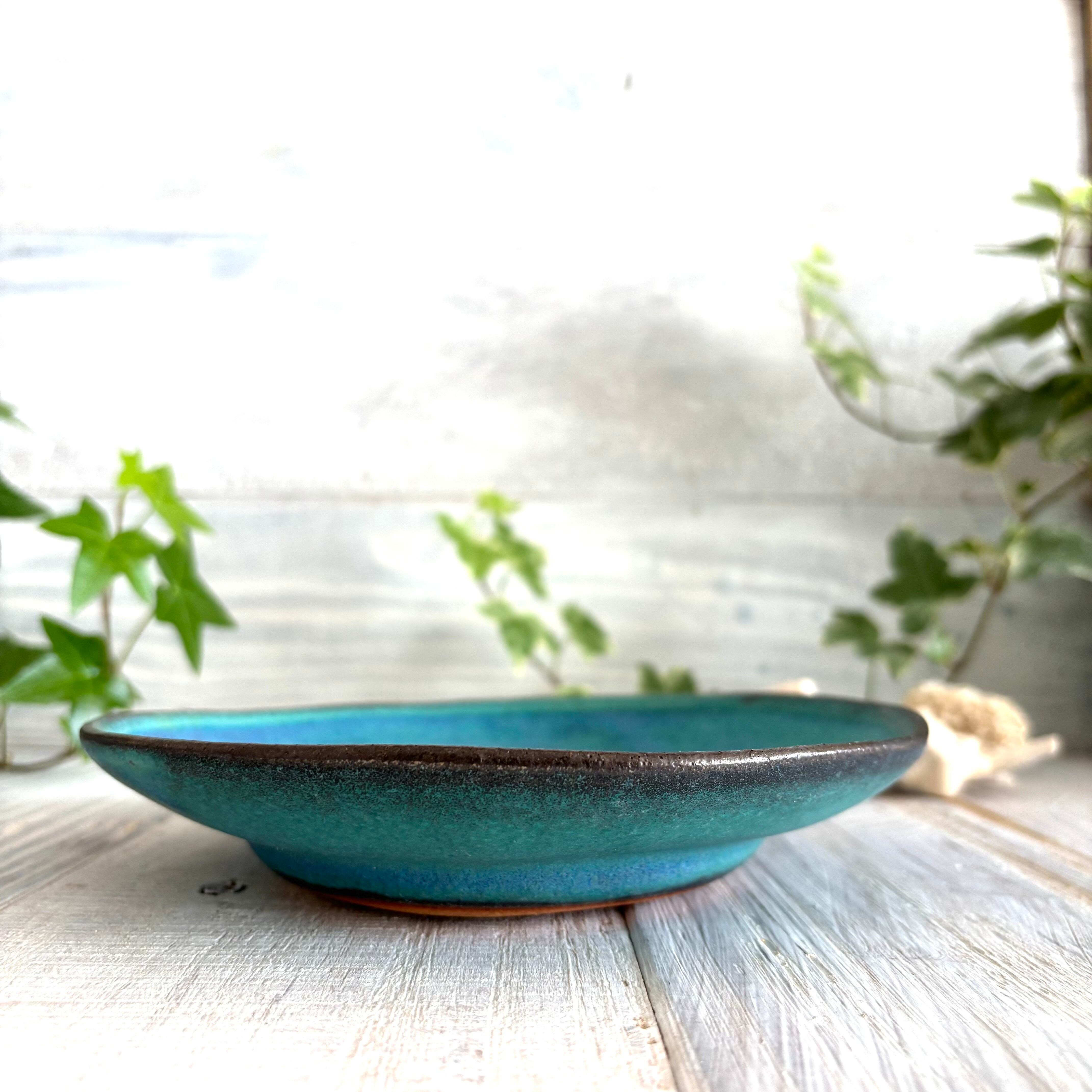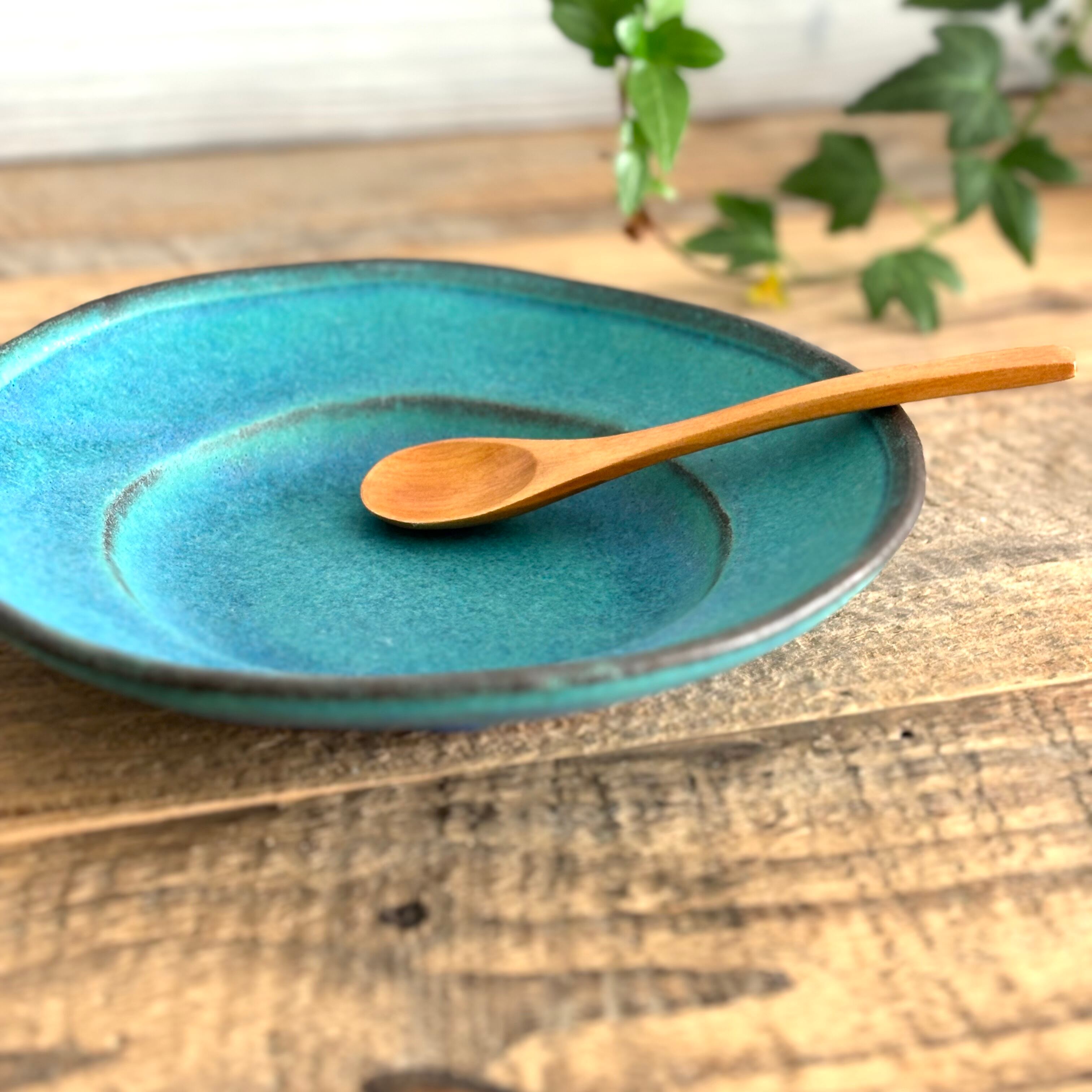 小皿サイズのリム皿【小】手作りならではのゆがみがカワイイ印象にしています。食卓に海を感じる食器をどうぞ。