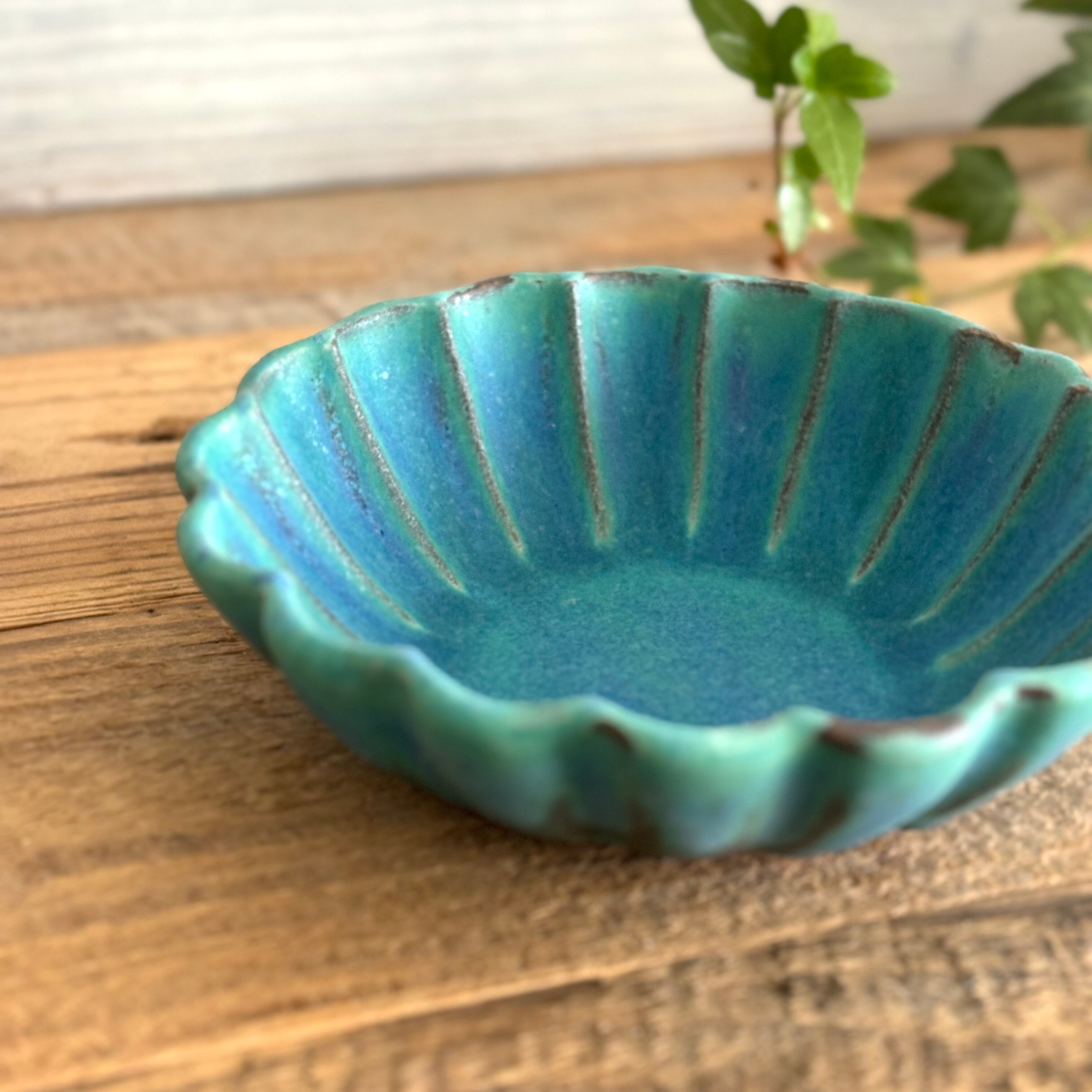 お花のフォルムがキュートな益子焼のミニボウルです。食卓に海を感じる食器をどうぞ。