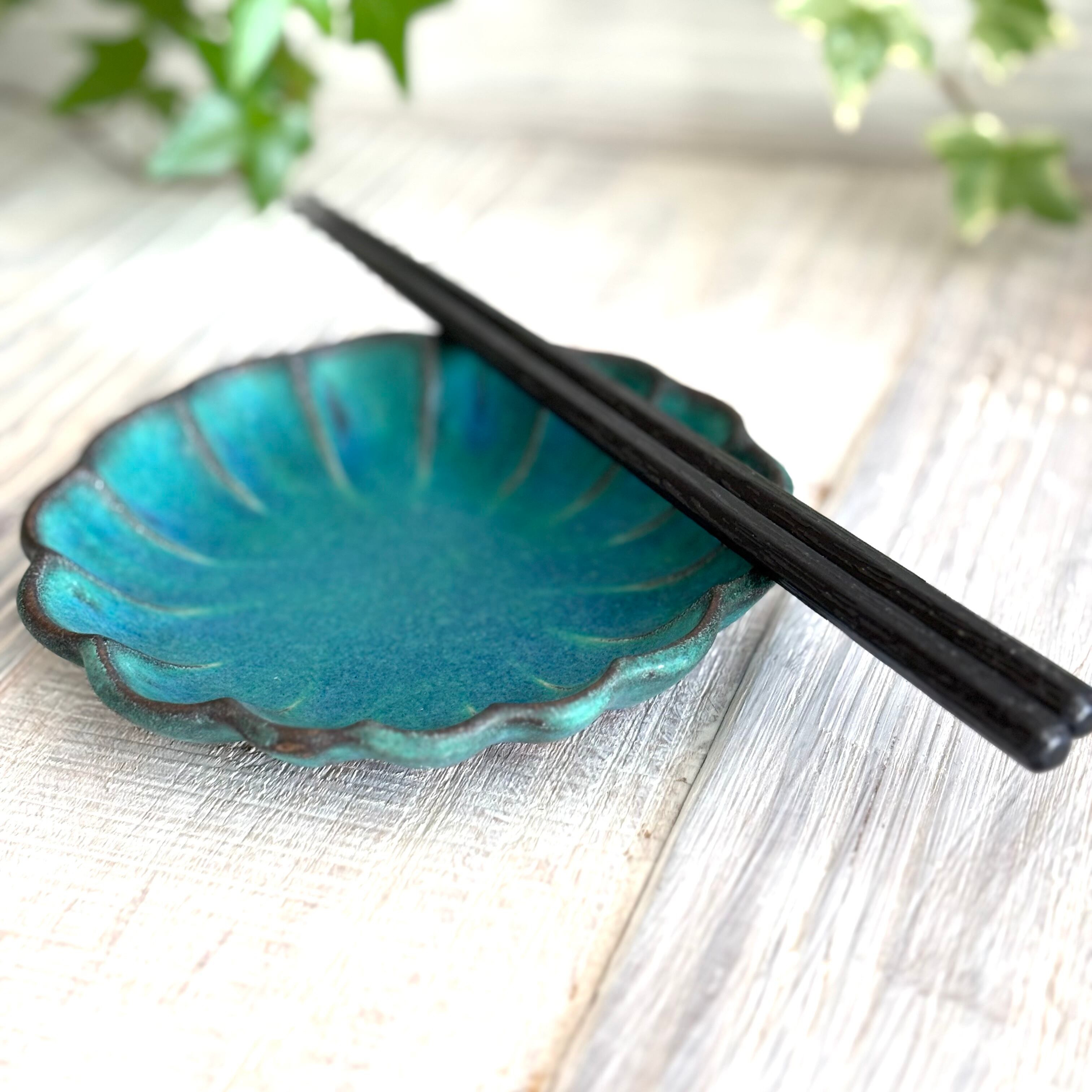 モチーフはとっても可愛いお花の形。副菜皿や菓子皿、醤油皿、デザート皿など、オールマイティーに使える益子焼の小皿です。