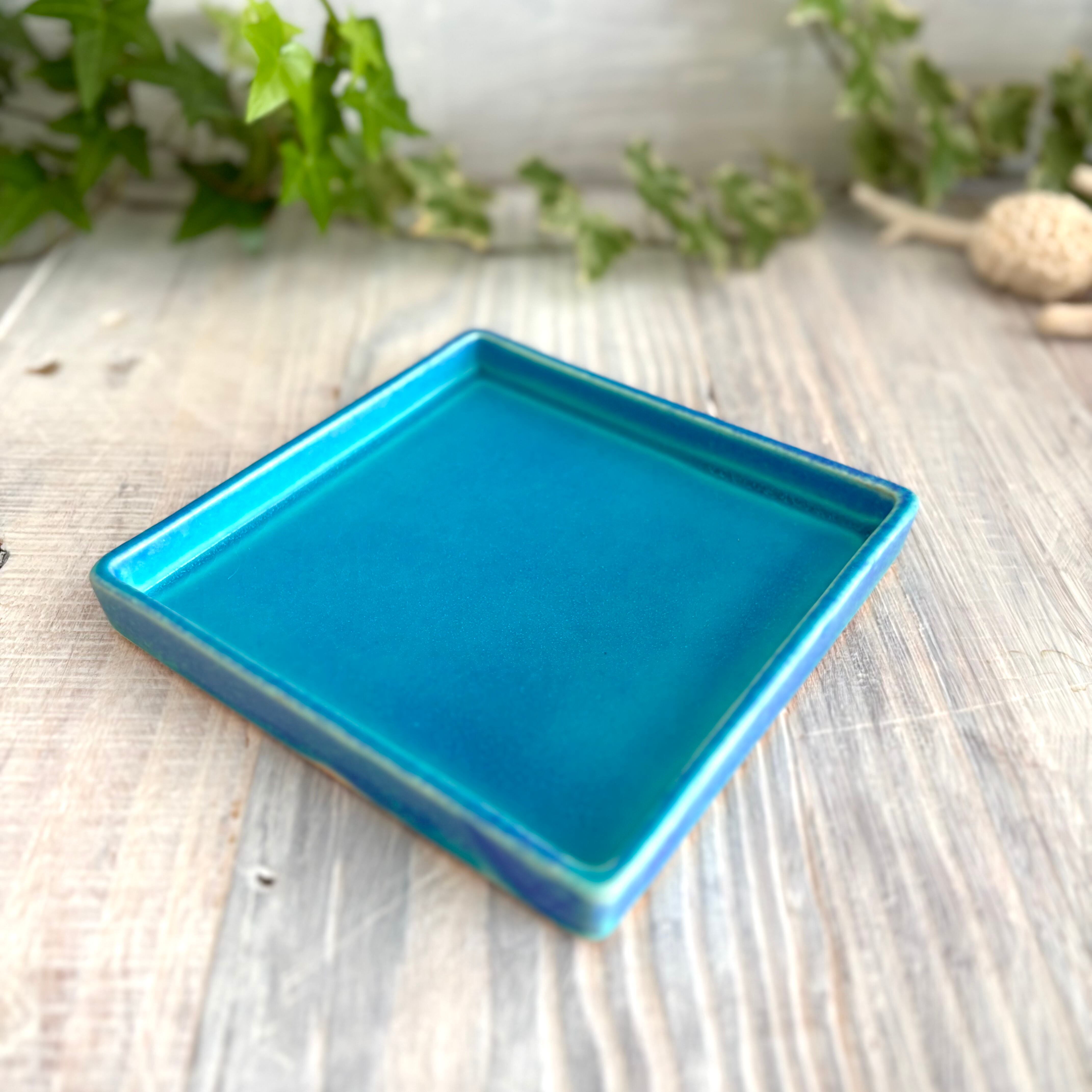 美しいターコイズブルーが食卓を華やかに彩ります。おつまみやオードブル、お寿司、餃子、お茶菓子用のお皿としてぜひどうぞ。モダンテイストにも合うので、西海岸スタイルや北欧スタイルなど、どんな場面でもお使いいただけます。