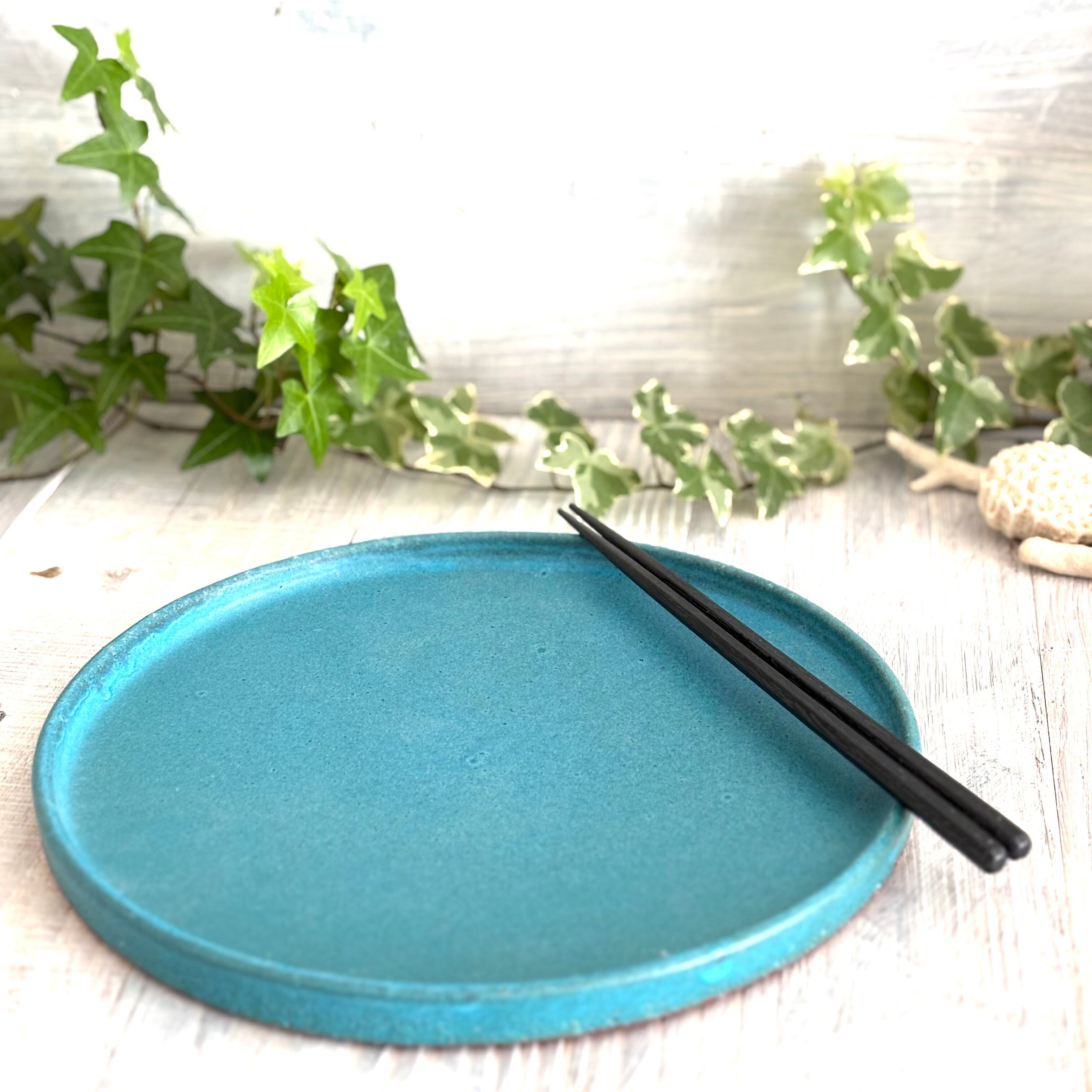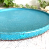 鮮やかなペルシャブルーの色合いが人気の切立プレートです。色鮮やかなペルシャブルーのプレートがオードブルを引き立てます。淵に少し高さがあるのでパスタやサラダ、朝食のワンプレートなどにお使い頂けます。
