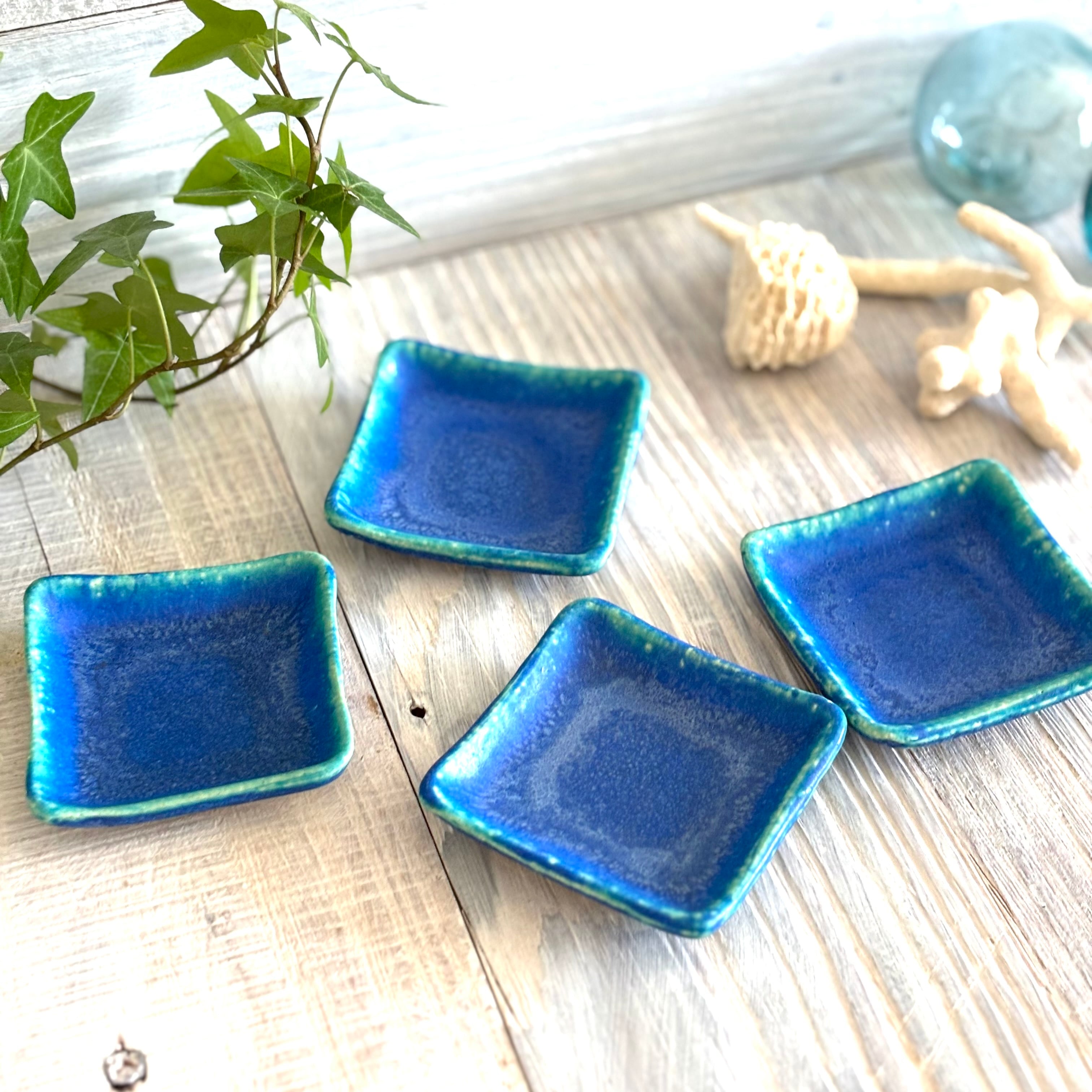 青味の濃いターコイズブルーの色合いが人気の信楽焼のターコイズシリーズです。色鮮やかなターコイズブルーのプレートは四季を問わずお使い頂けます。手のひら程の大きさの(S)サイズは、豆皿や箸置きとしてお使い頂けます。