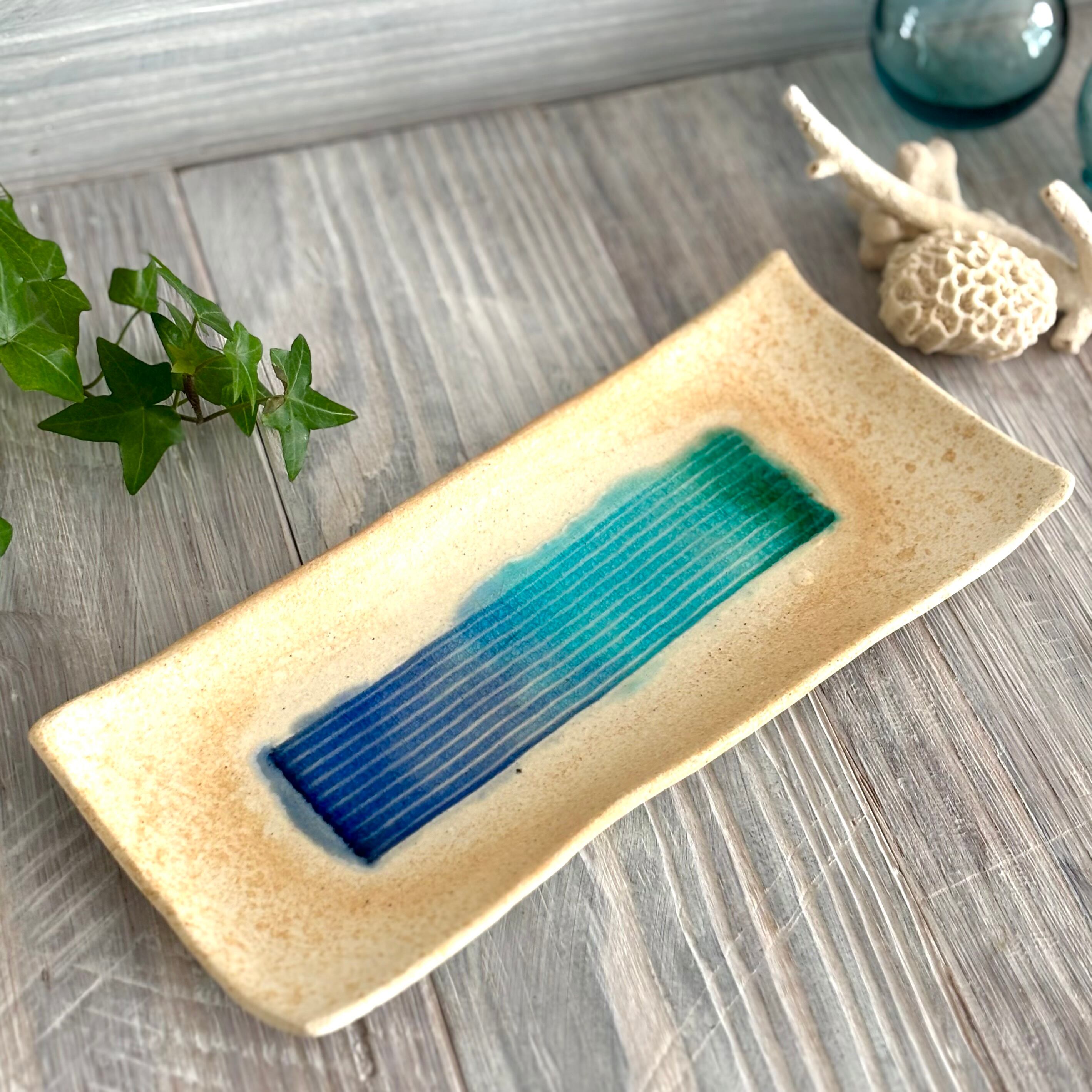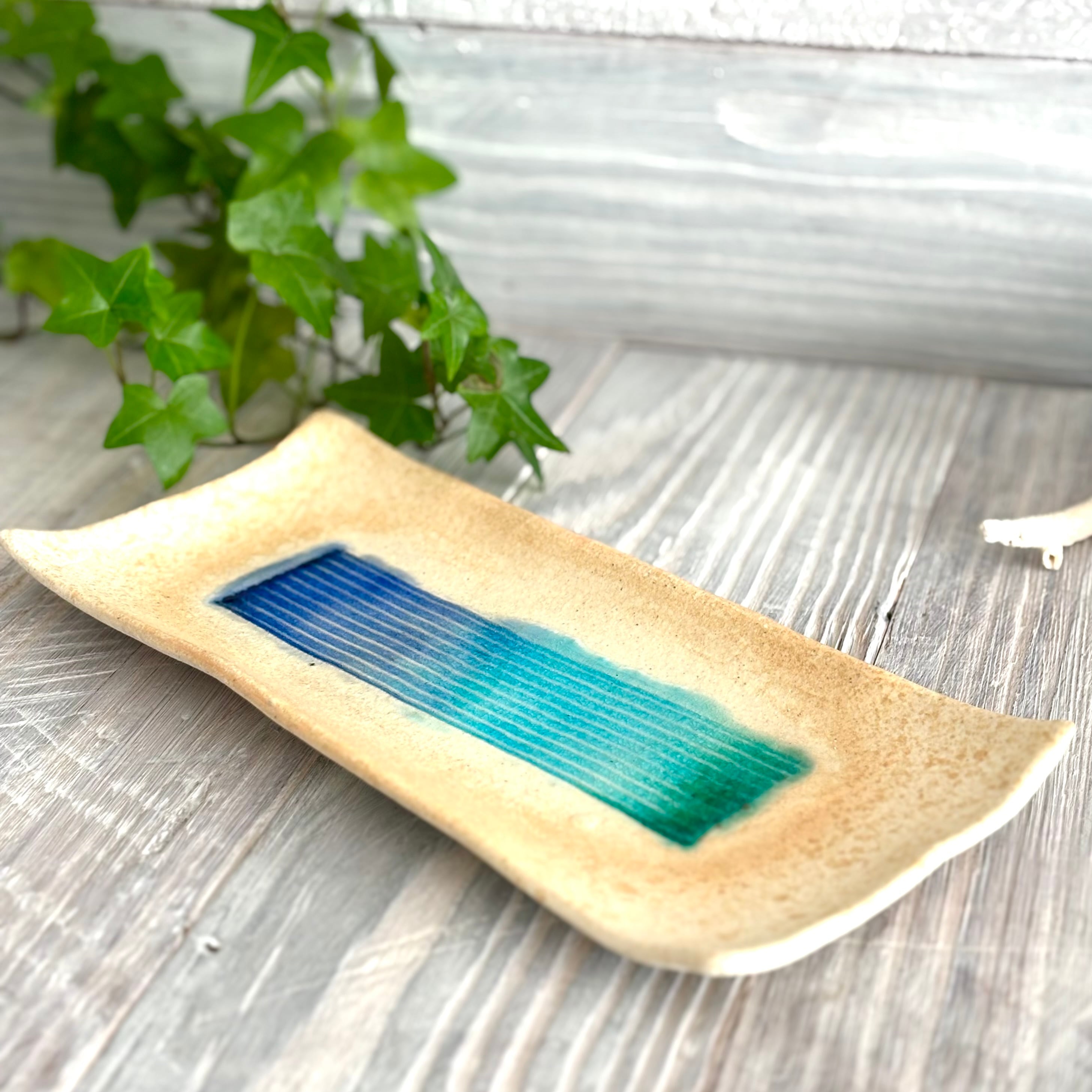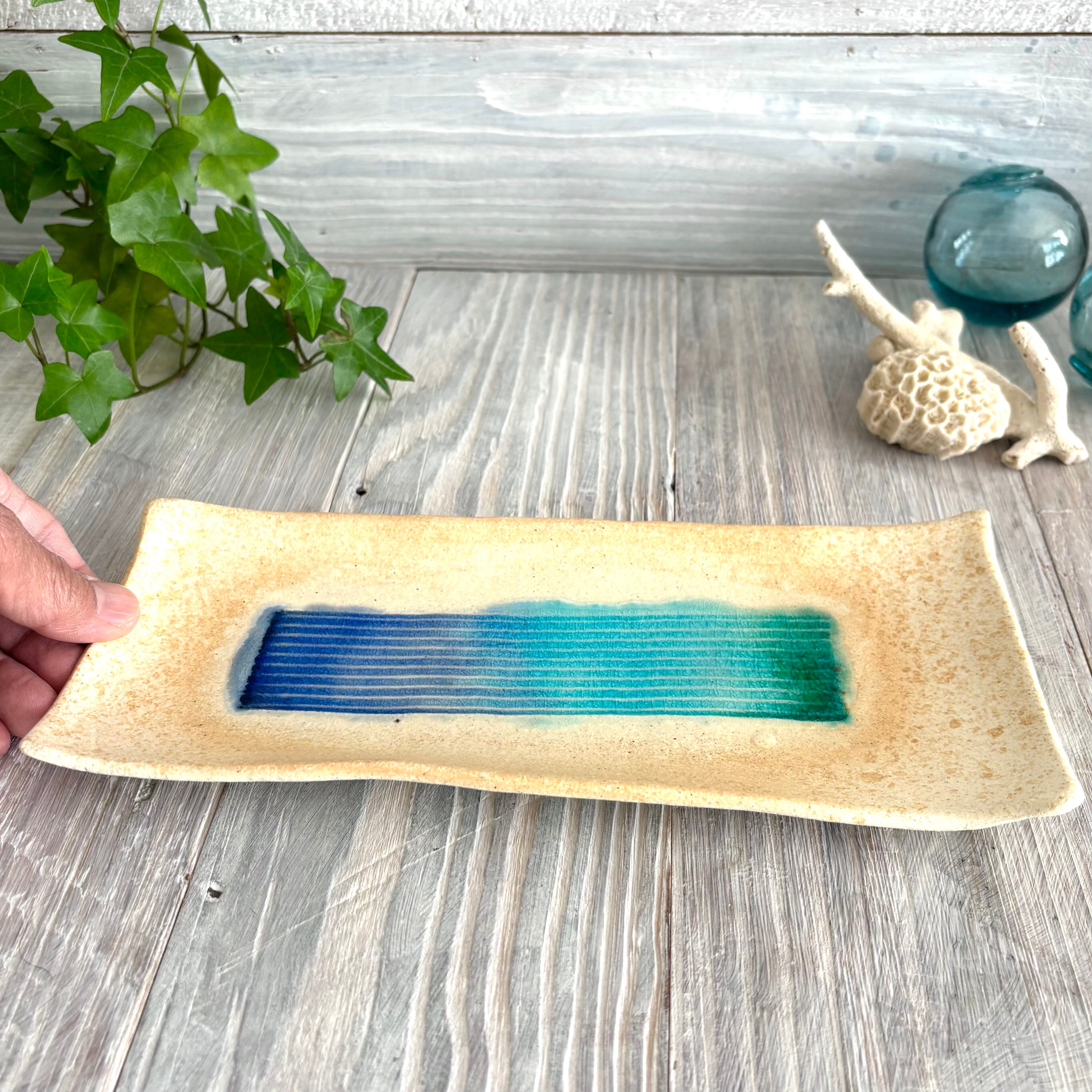 カルパッチョやお刺身などに合う角長プレートで、サイドボードなどの飾り棚やテーブルのセンタートレーとしても。