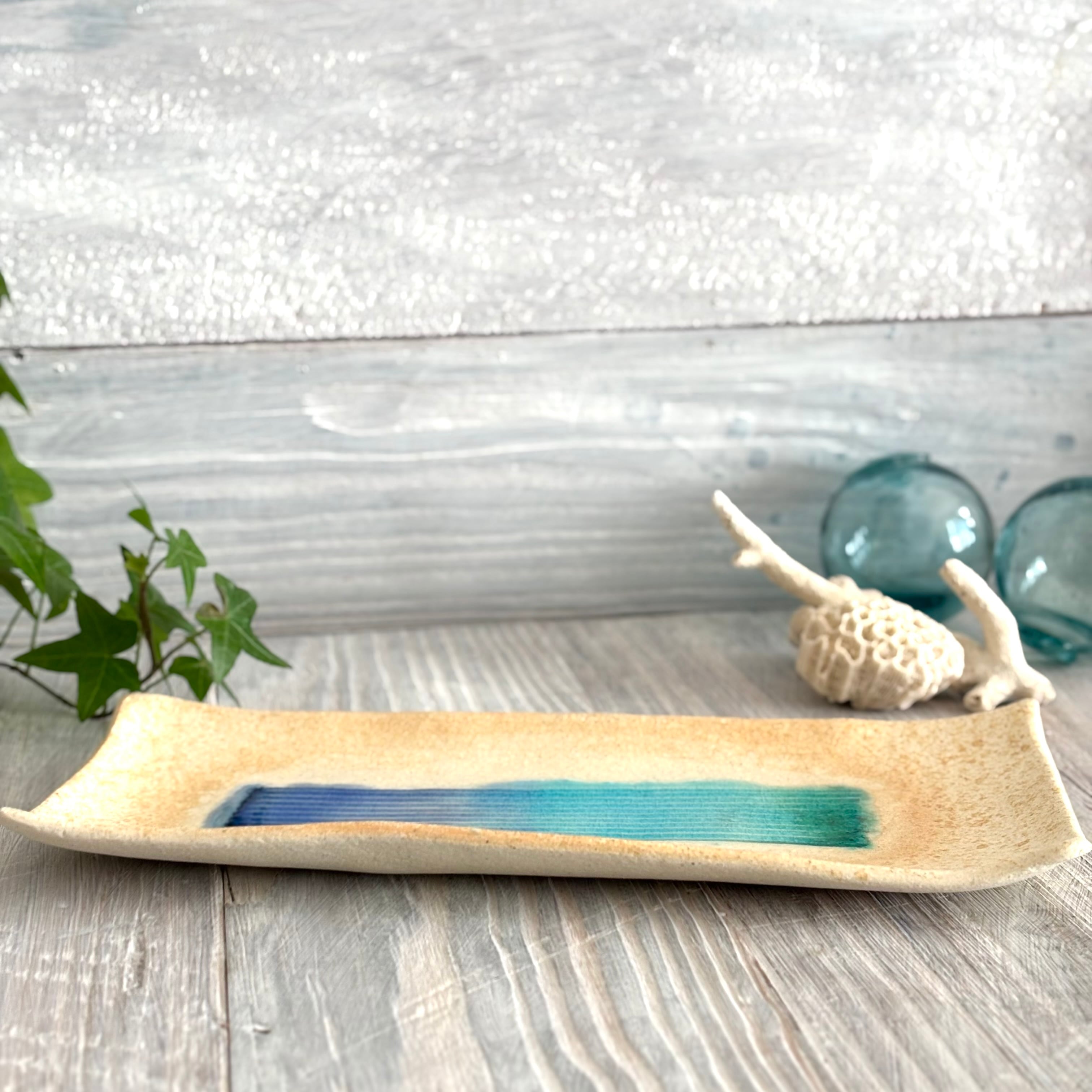 沖縄の砂浜のようなプレートの中央にサンゴ礁を思わせるグラデーションのガラスでアクセントをつけました。