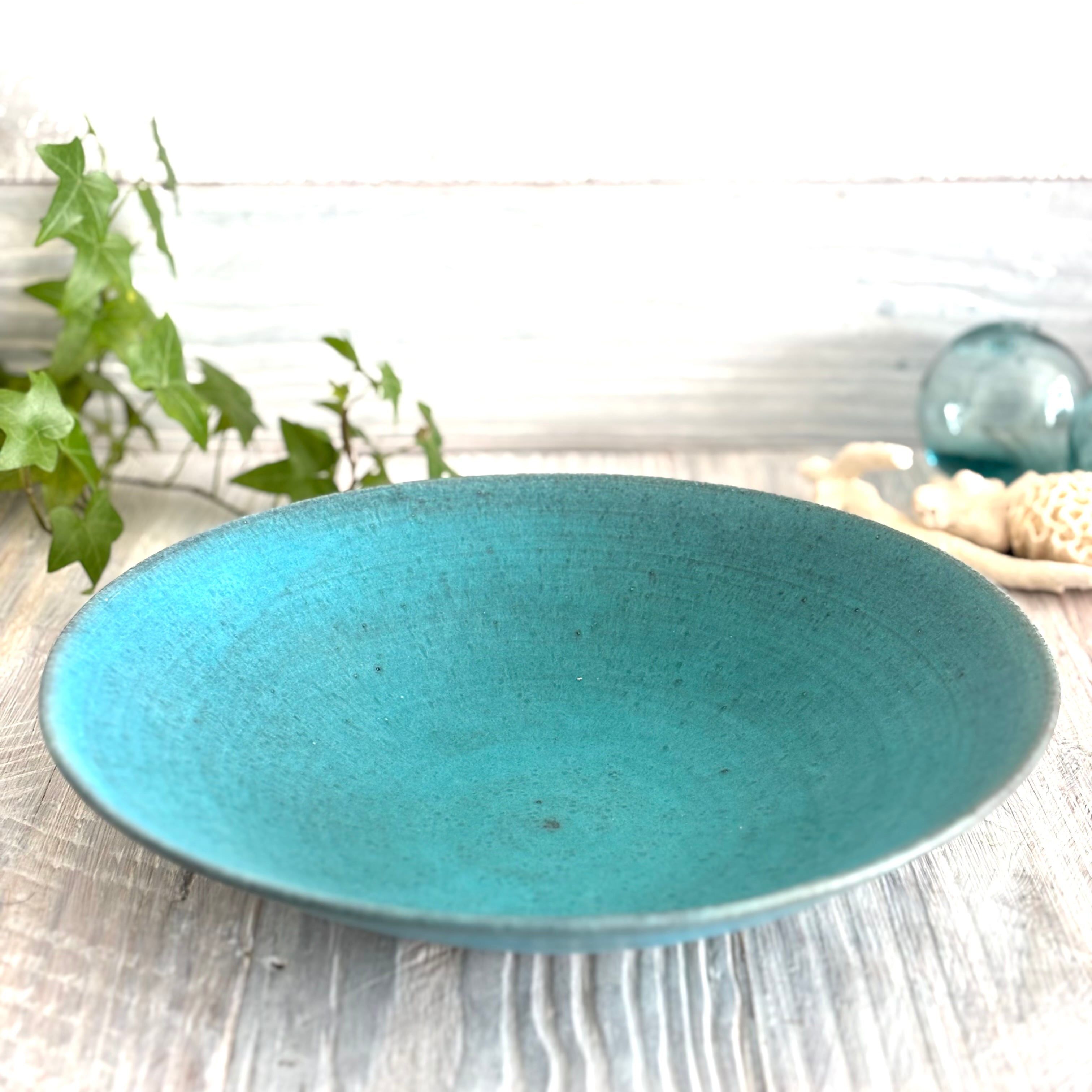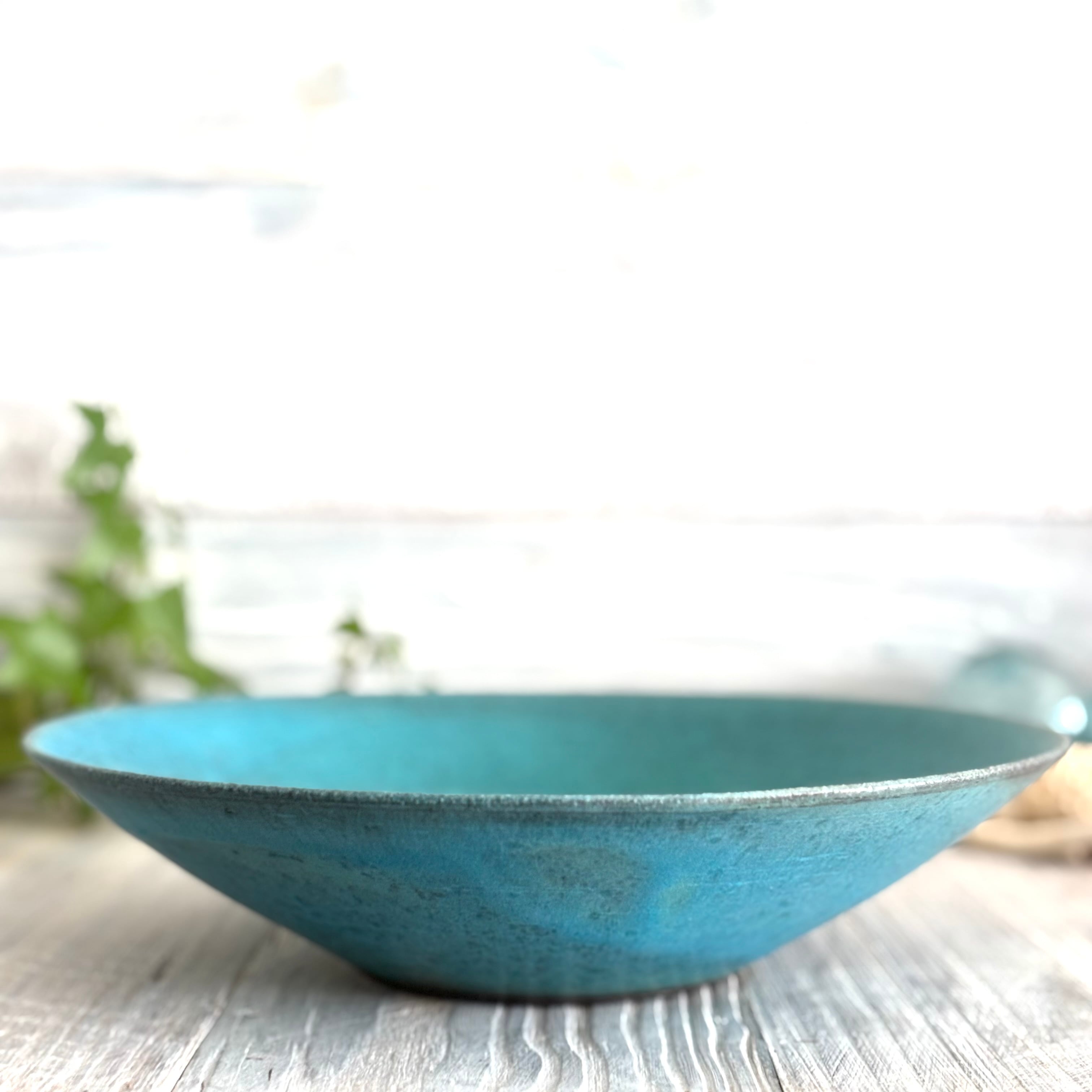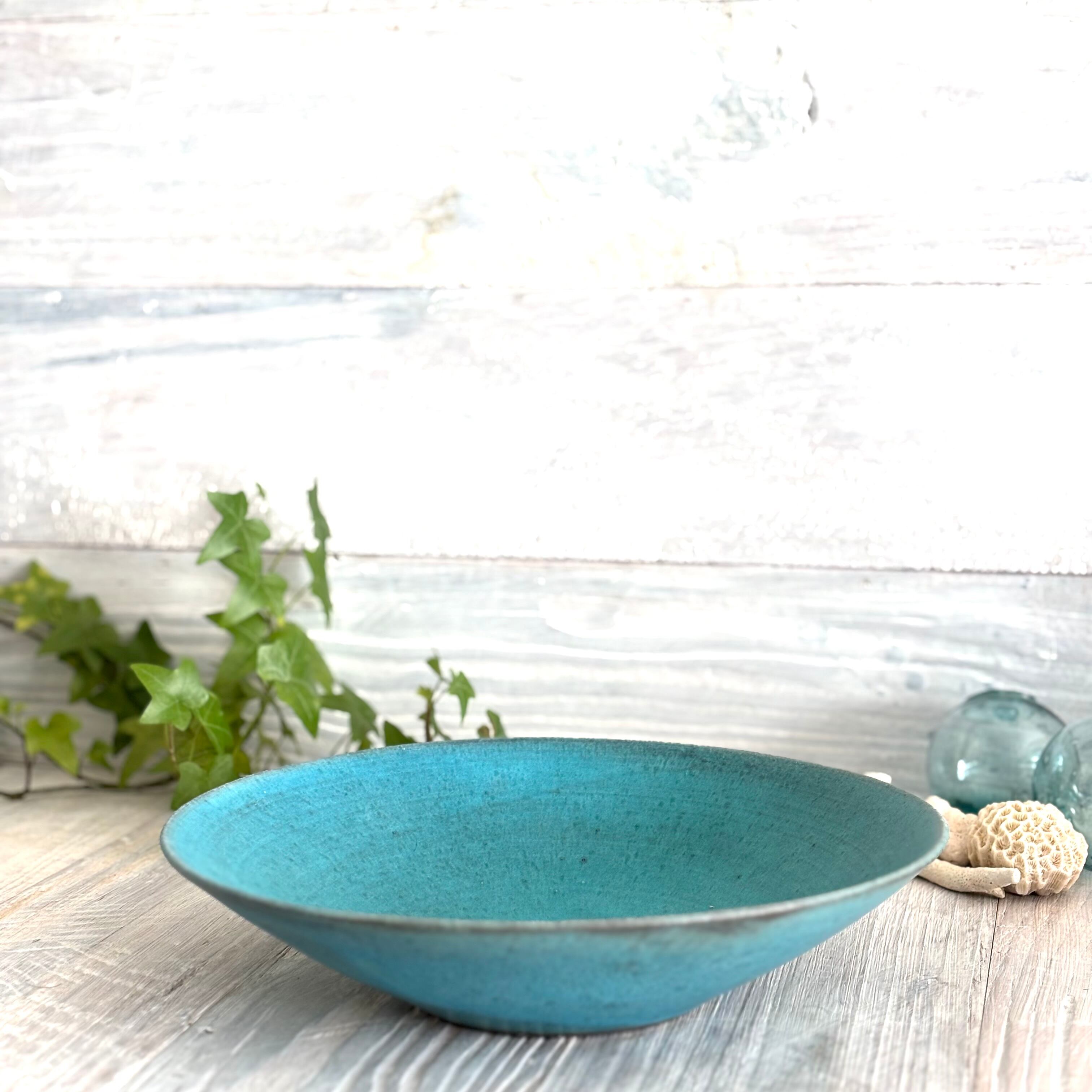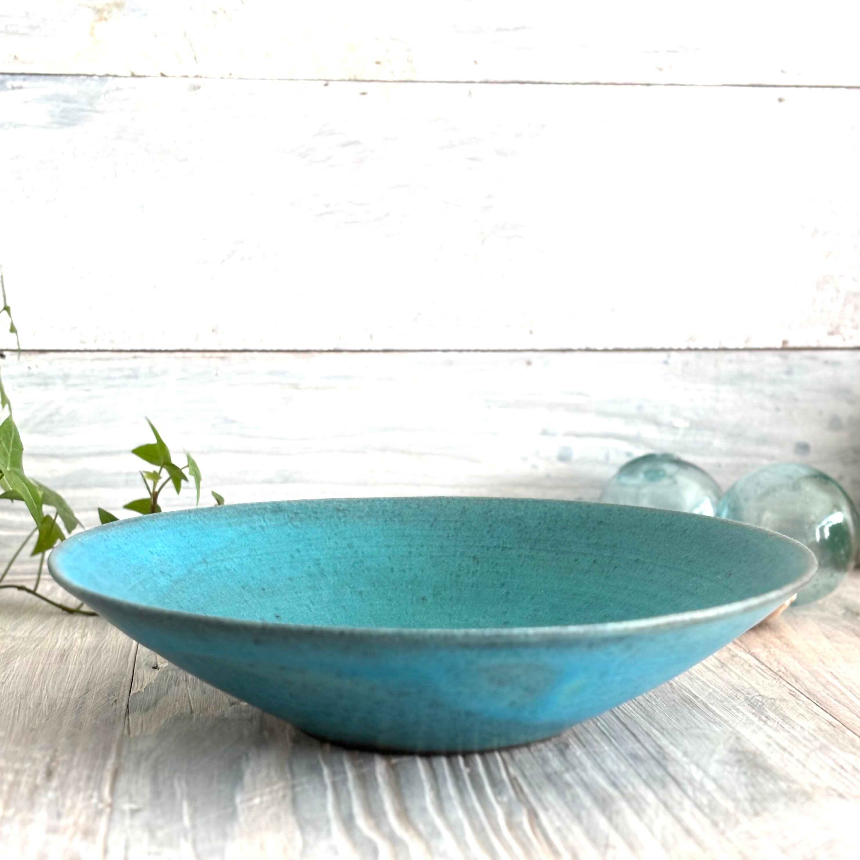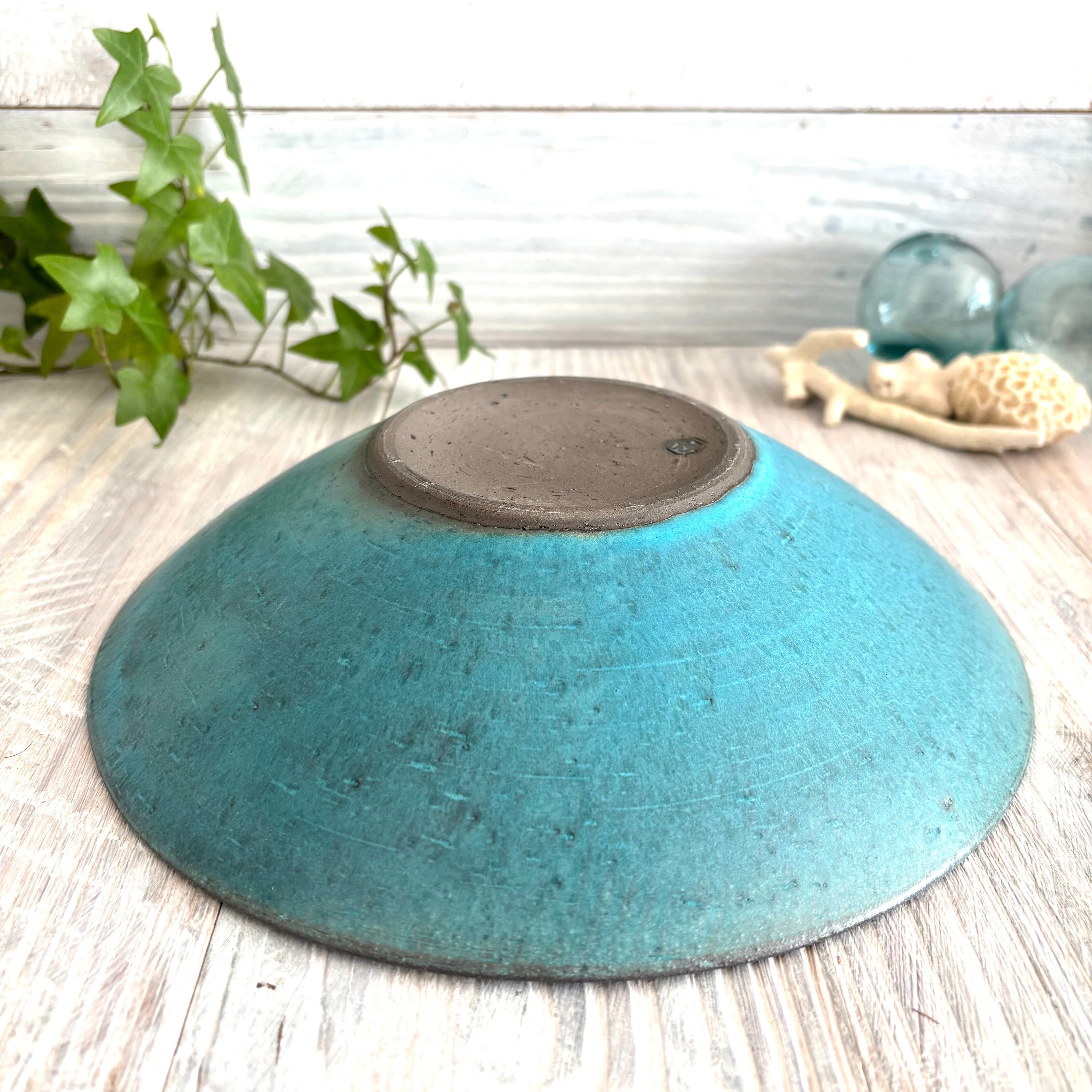 丹波篠山にある窯元からのターコイズブルーの深めのラージボウルです。盛り鉢としても、サラダボウルなどとしても最適です。使い込むごとに深みが増していきます。