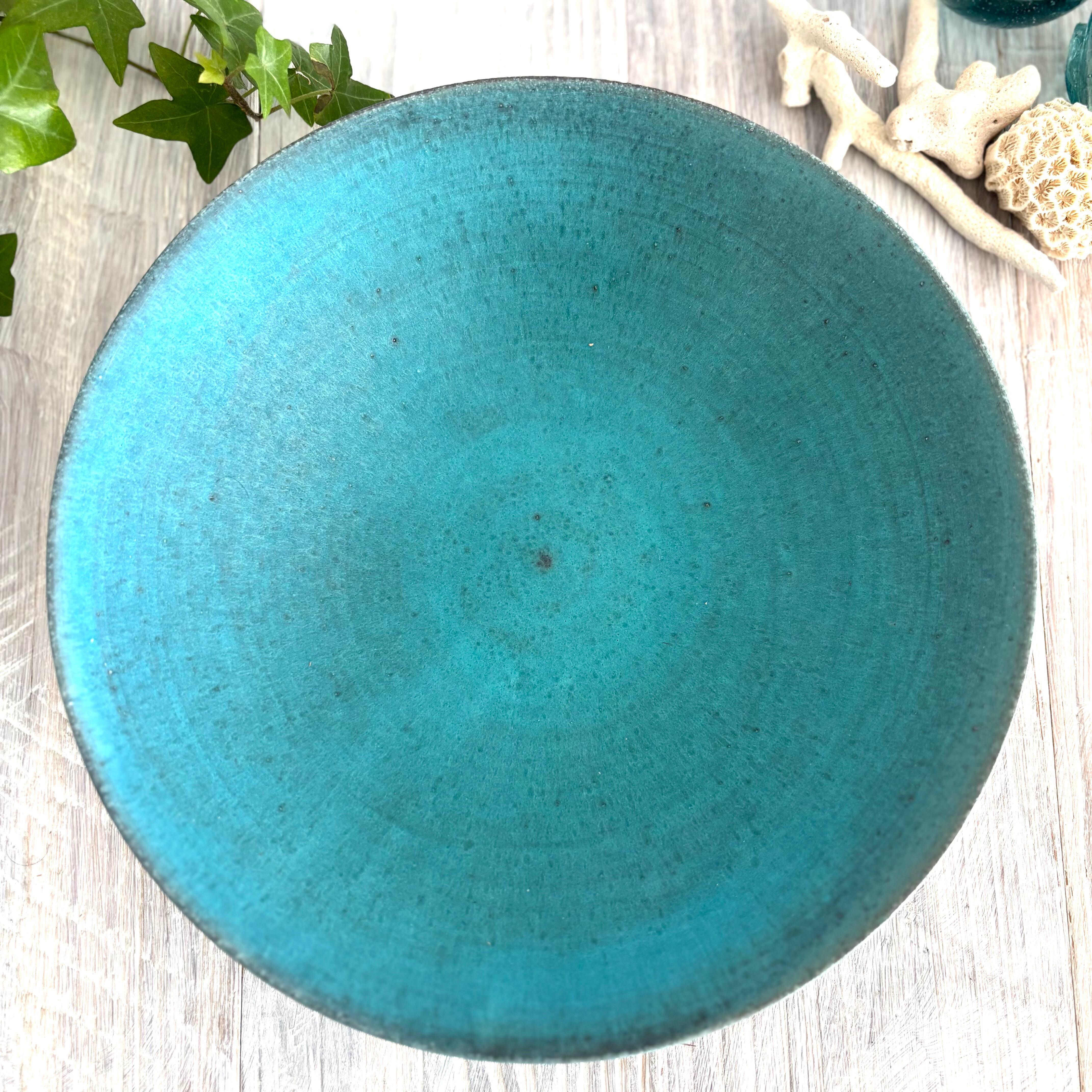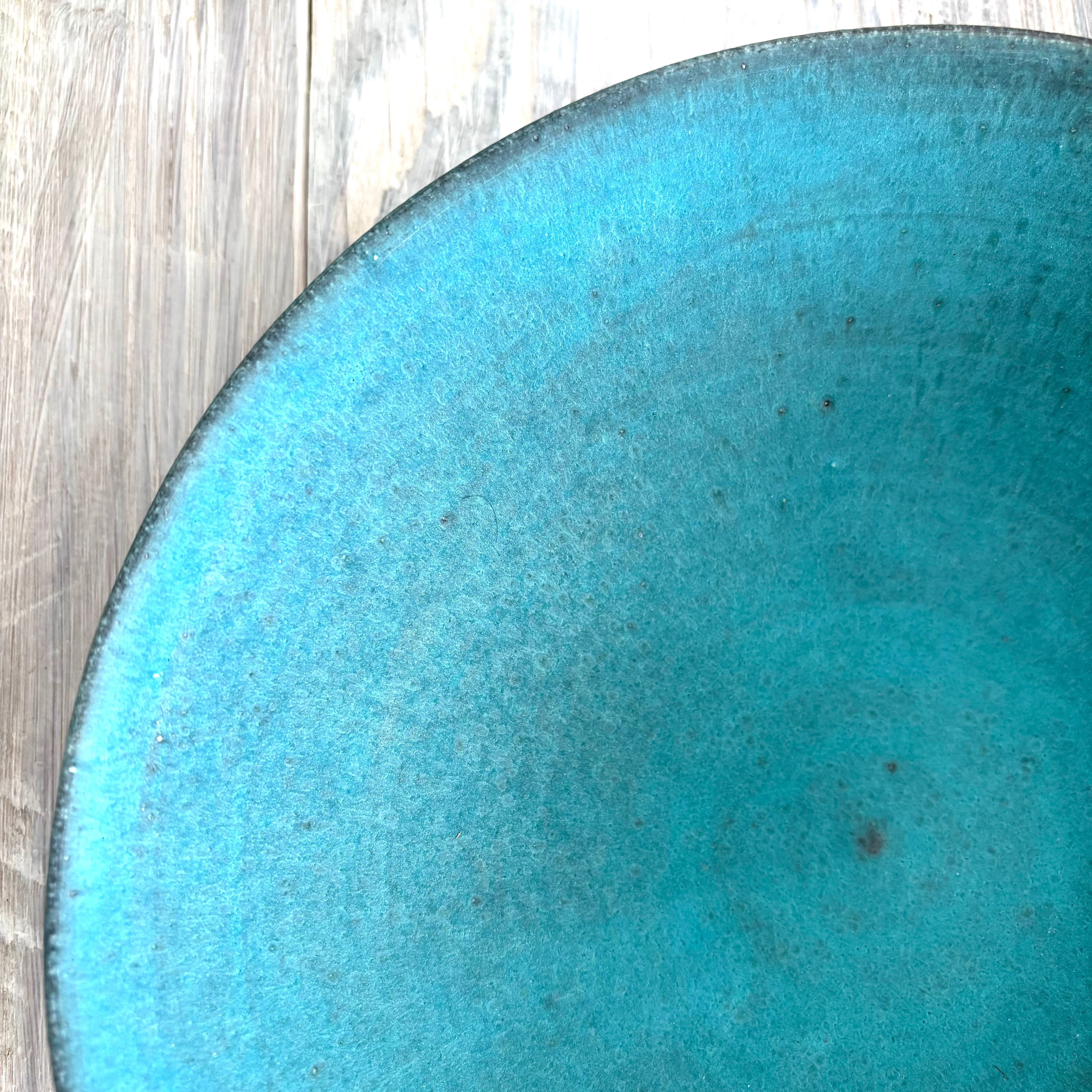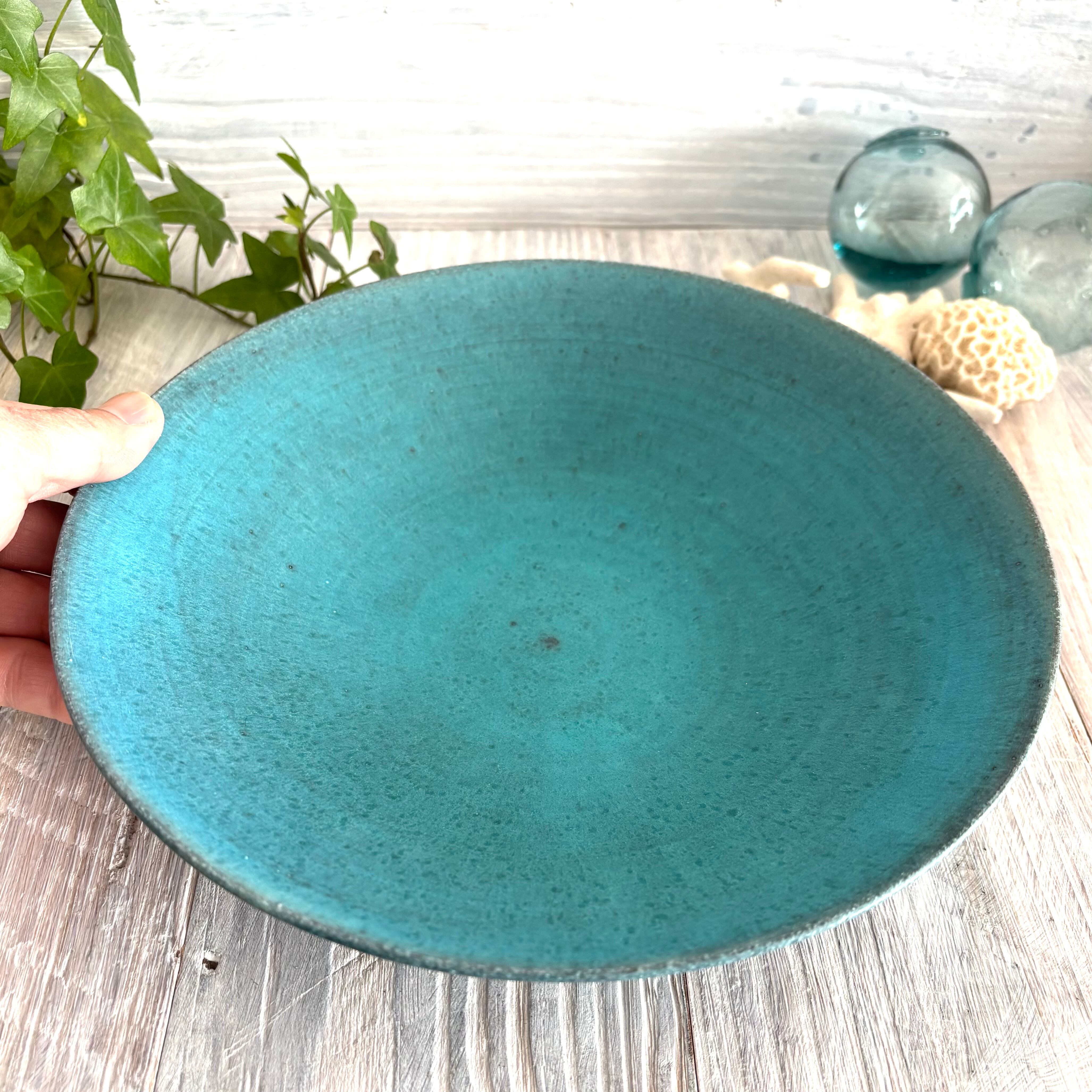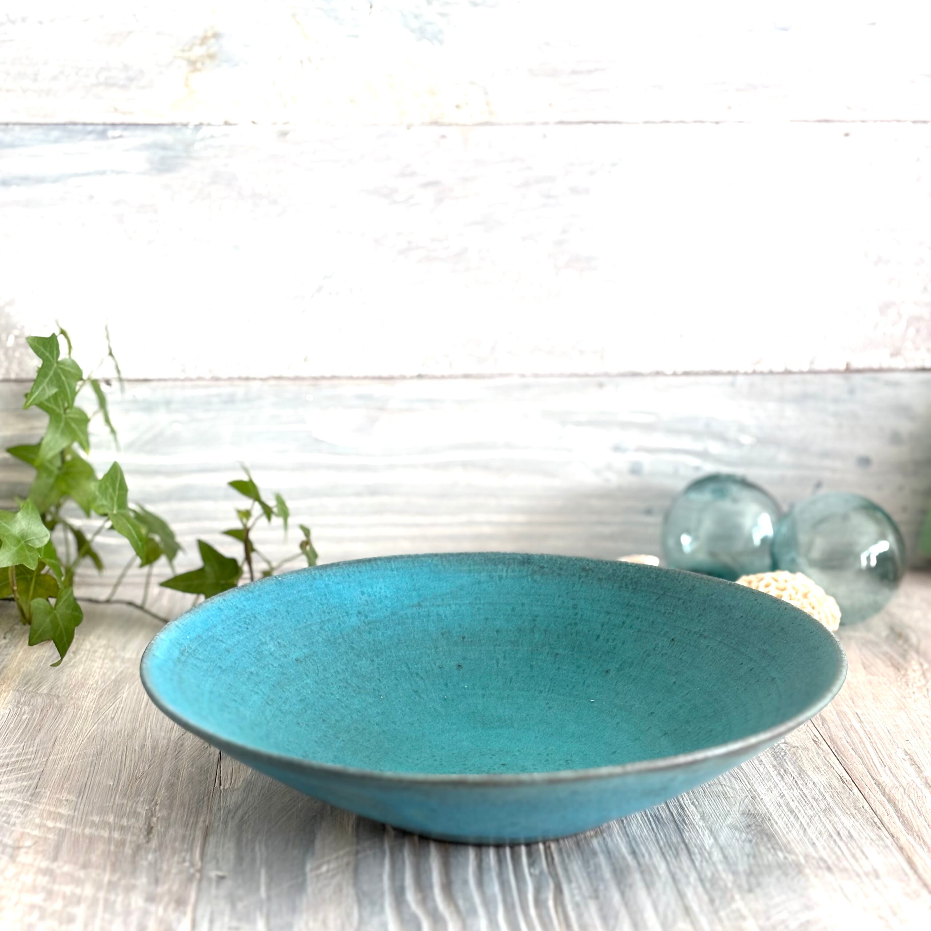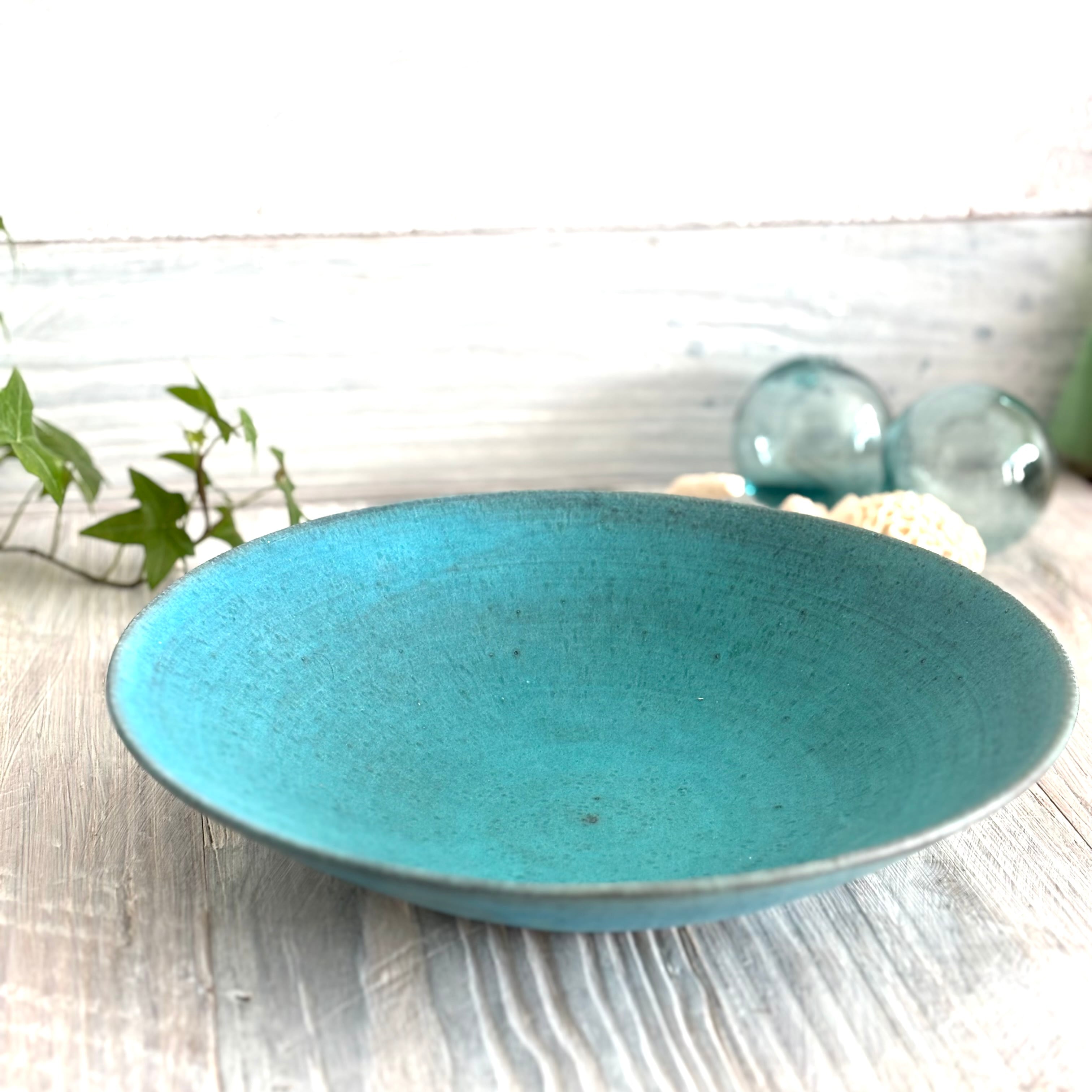 丹波篠山にある窯元からのターコイズブルーの深めのラージボウルです。盛り鉢としても、サラダボウルなどとしても最適です。使い込むごとに深みが増していきます。