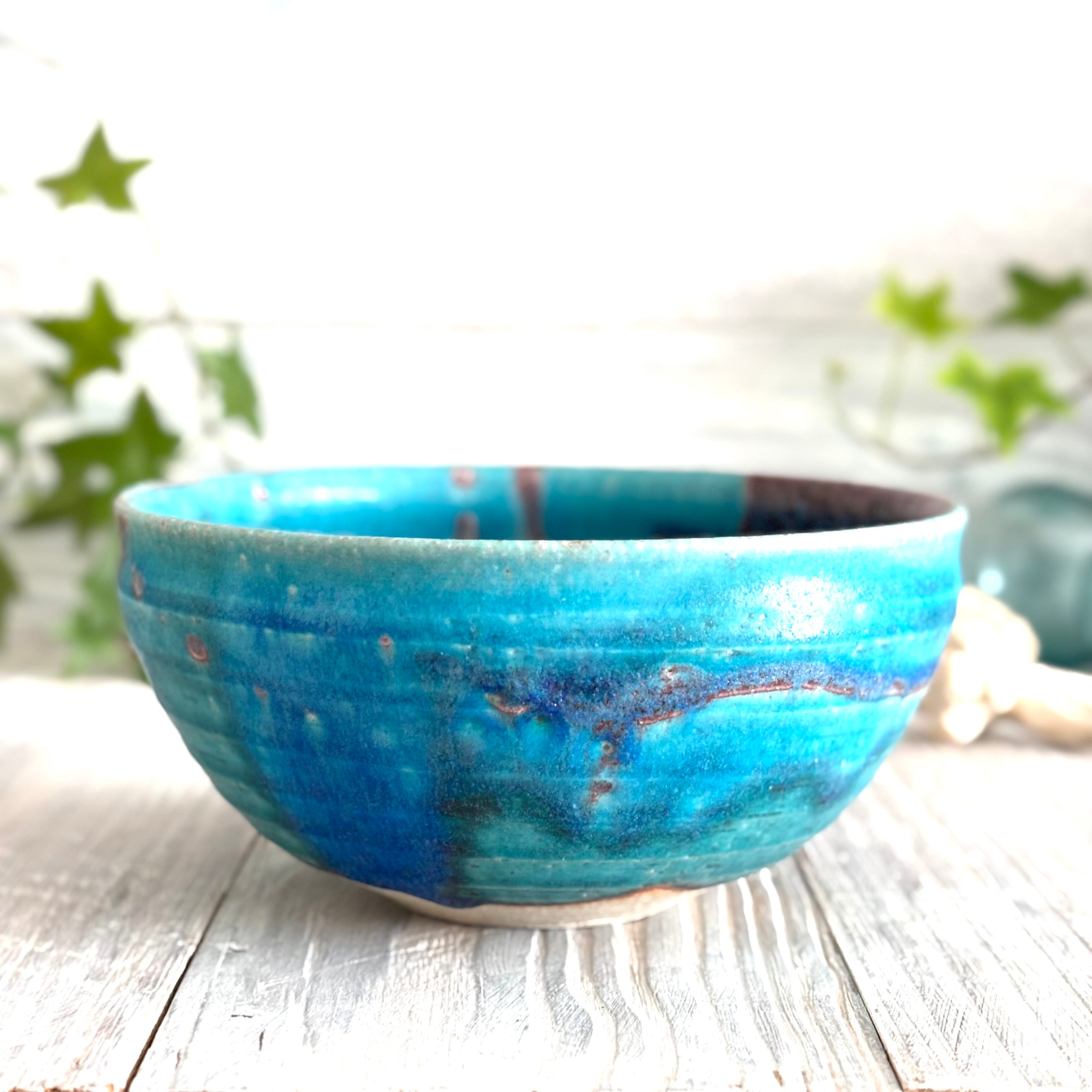 色鮮やかなトルコブルーがランダムに入った露草シリーズのボウルです。煮物などの盛付の鉢としても、麺類の丼やサラダボウルにもぴったりです。「信楽焼」は、滋賀県甲賀市信楽町でつくられているやきもの。日本六古窯の一つと数えられ、1260年もの永い歴史があるといわれています。 1976年(昭和51年)に国から伝統的工芸品の指定を受けています。