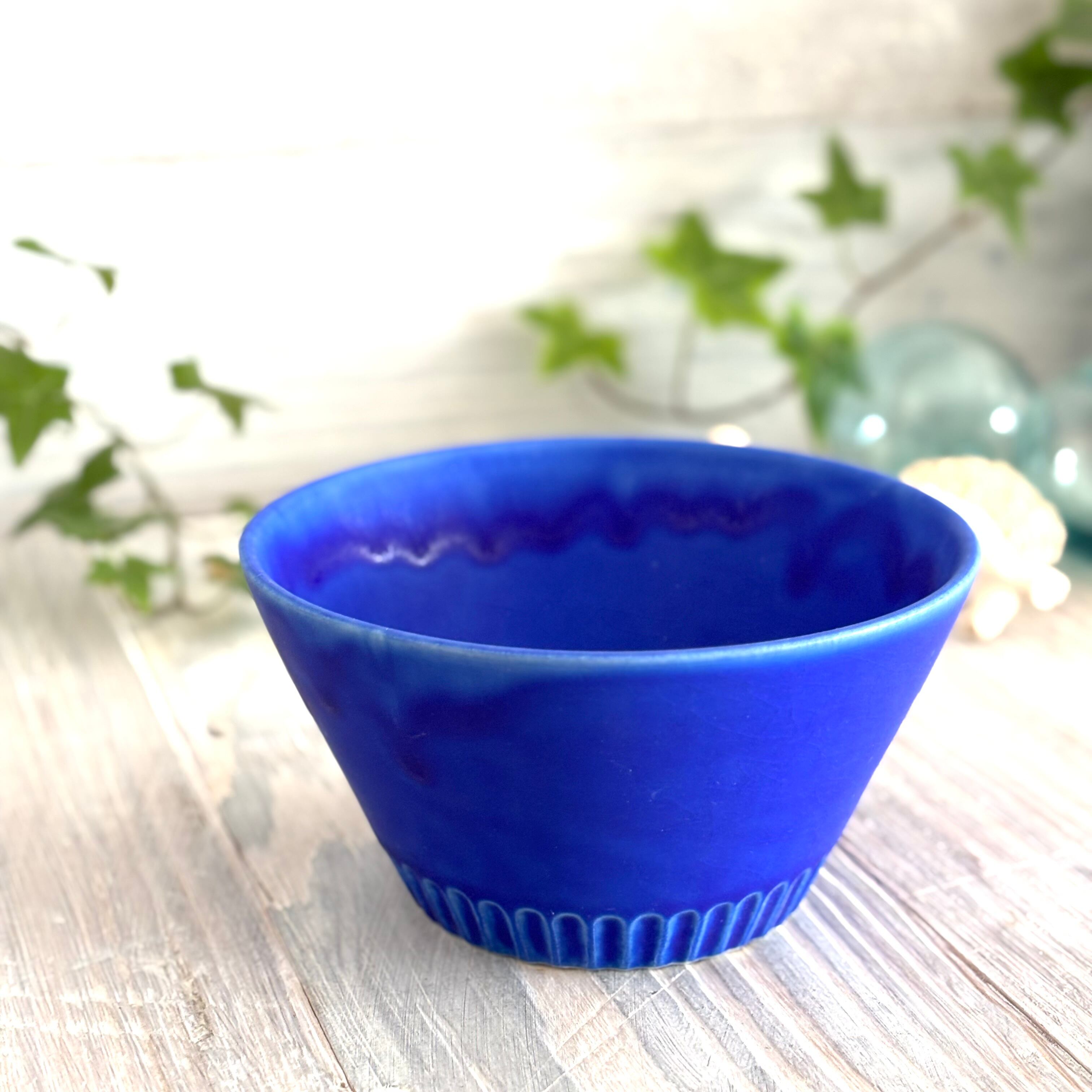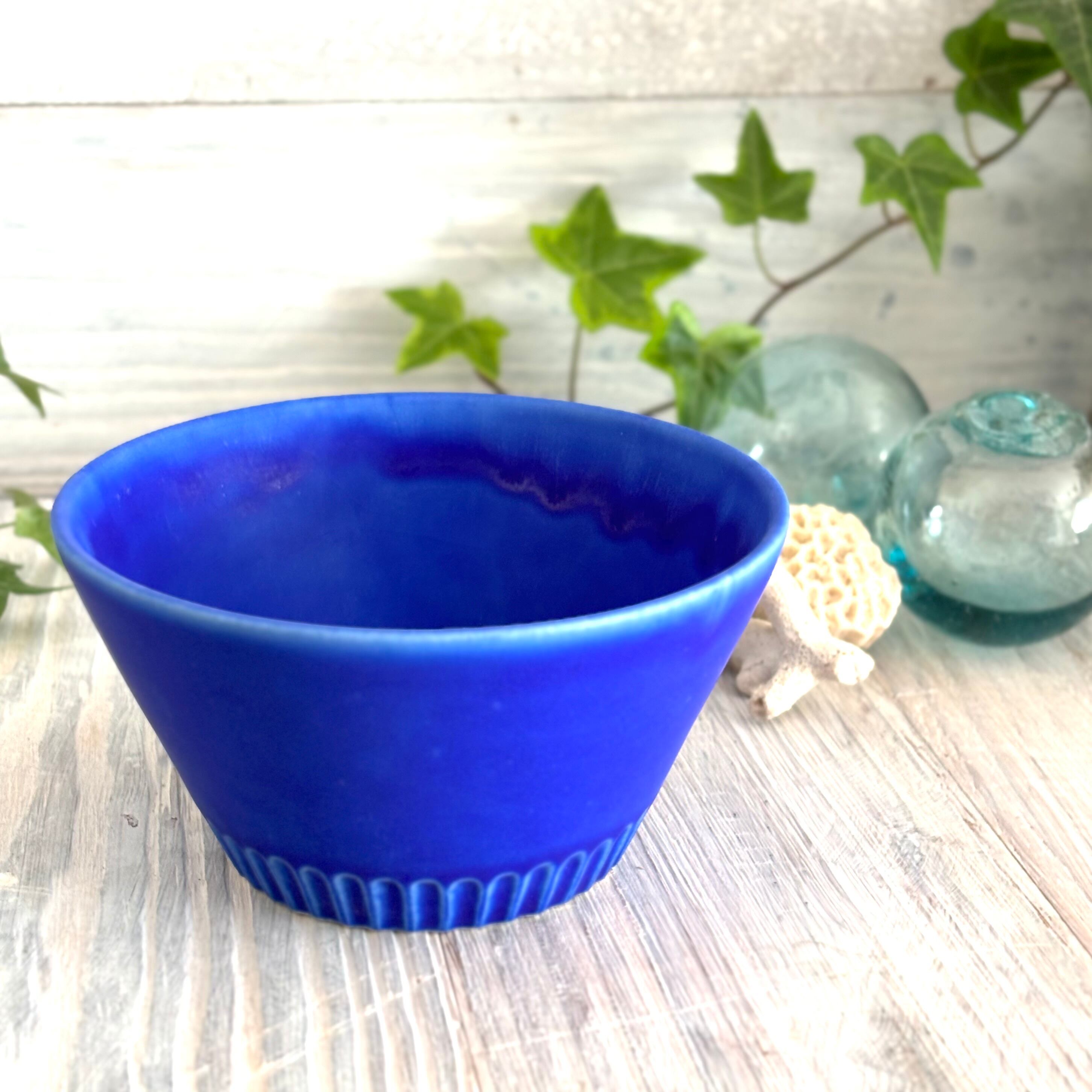 鮮やかなインディゴブルーのサラダボウルです。