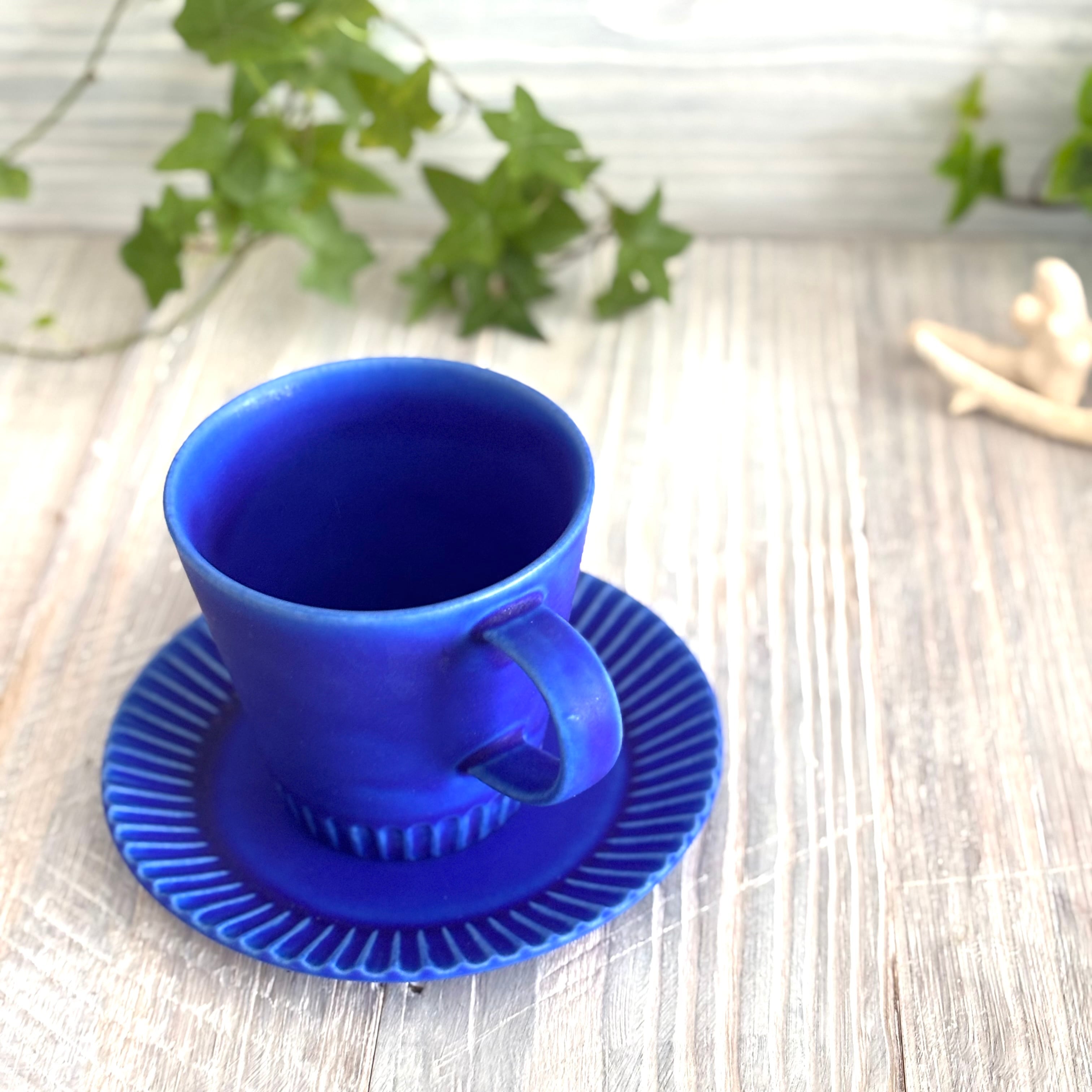 色鮮やかなインディゴブルーのカップとソーサーのセットです。