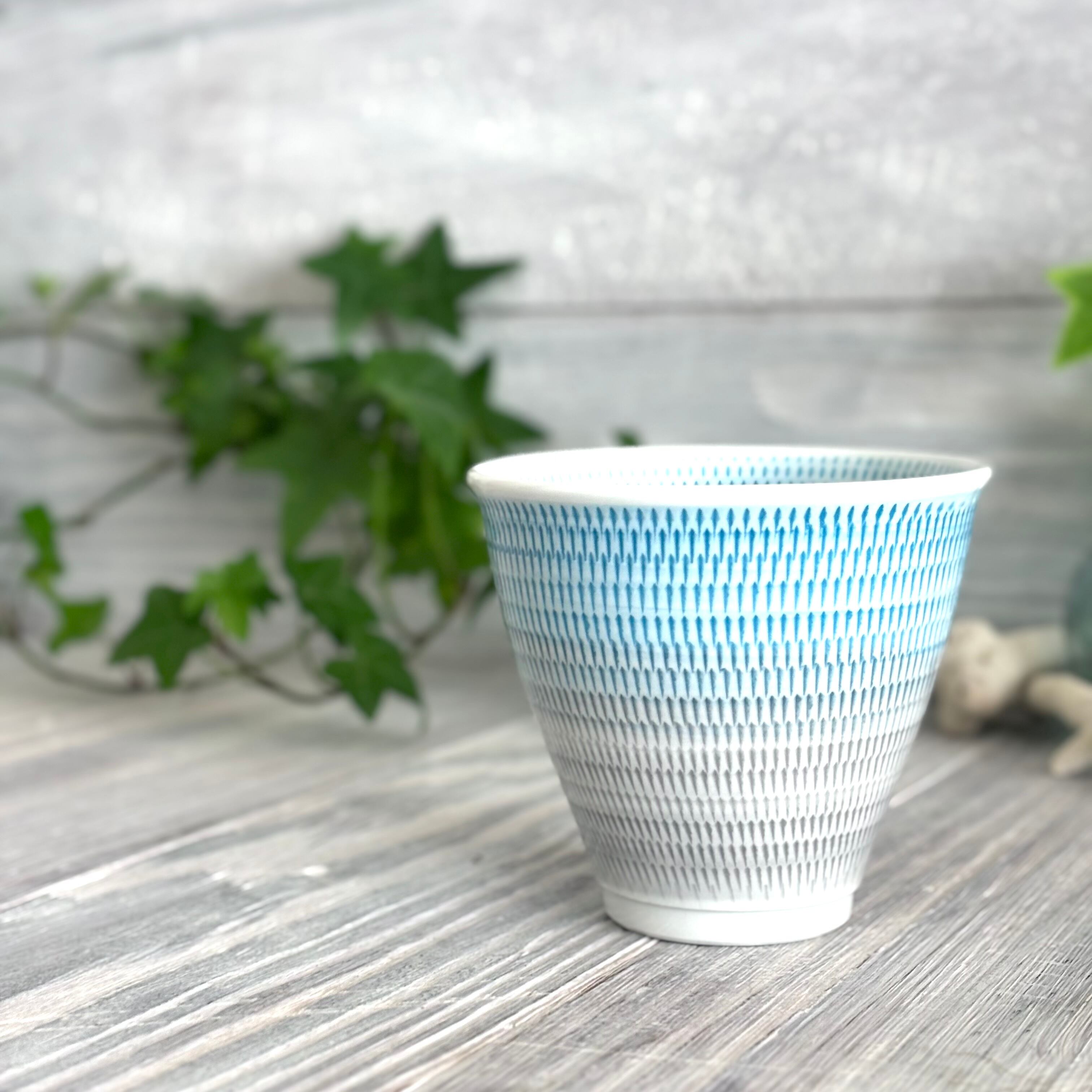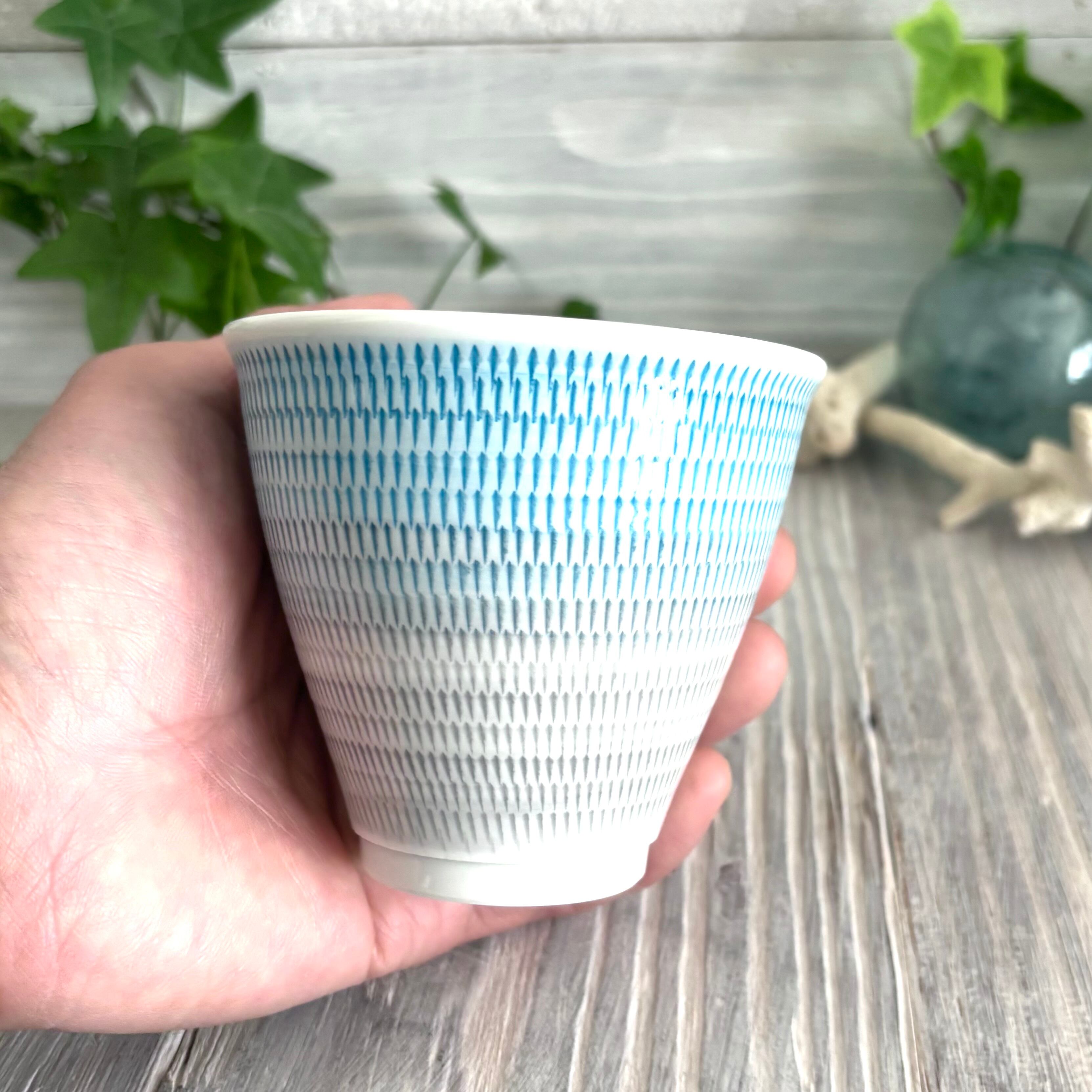 #hasamiyaki #hasamiware #波佐見焼 #ターコイズカラー #ターコイズ #トルコブルー #トルコブルーマット #飛び鉋 #とびかんな #湯飲み #フリーカップ #小鉢 #ターコイズブルー #波佐見 #湯呑 #湯のみ #富士カップ #染色流し