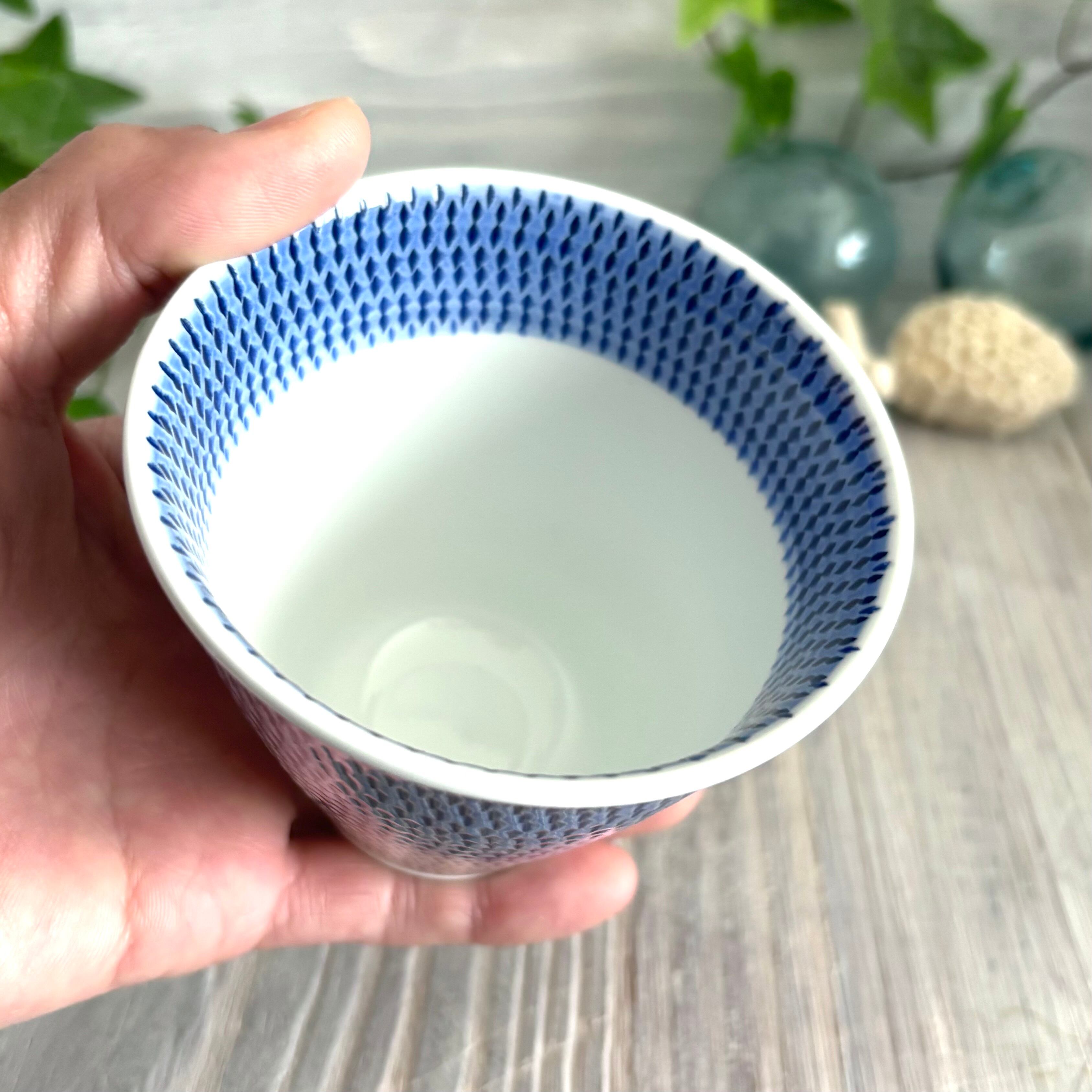 飛び鉋の技術が光るカップです。全て手作業で行っている職人技で、繊細な飛び鉋がカップの内側にまで入っているのも特徴の一つ。