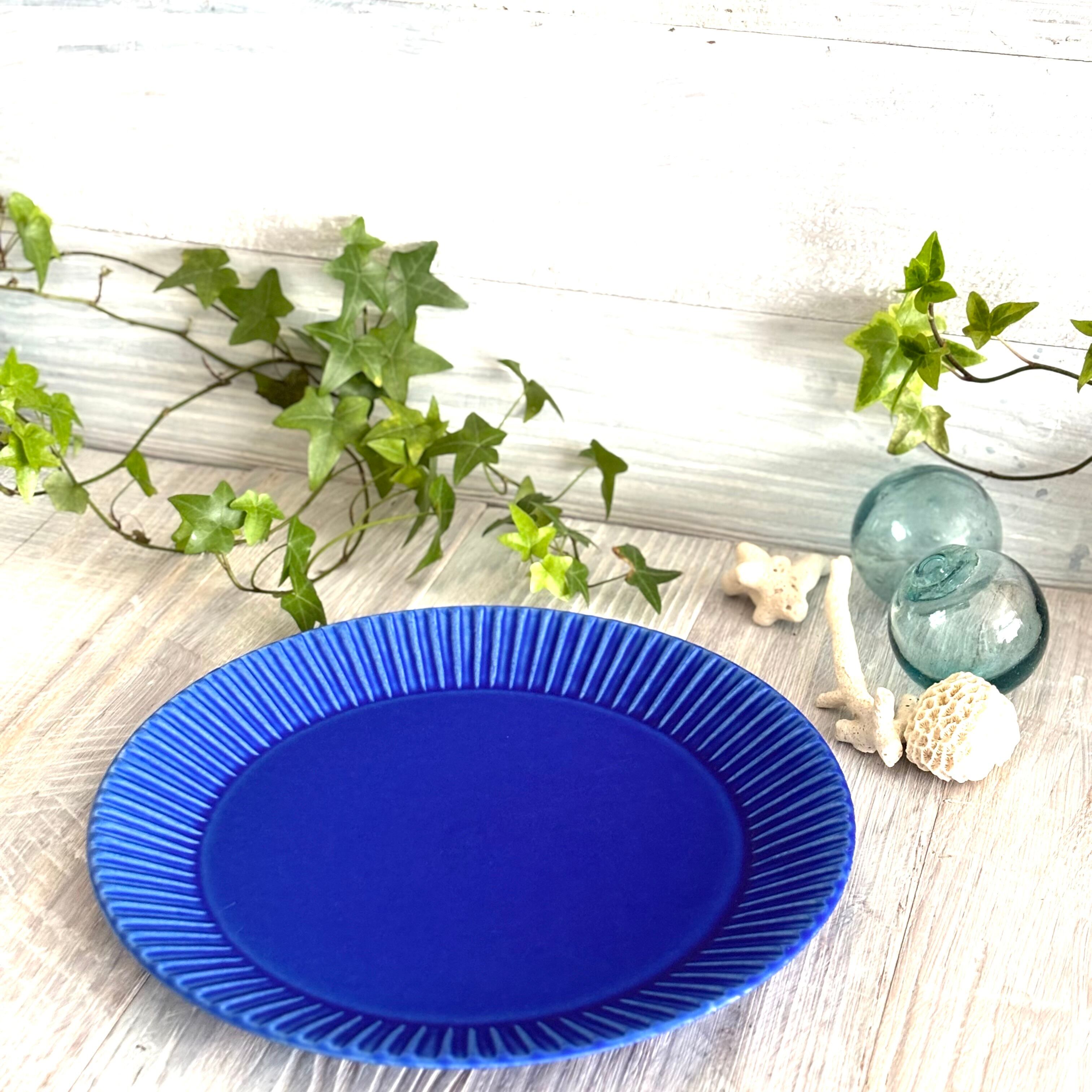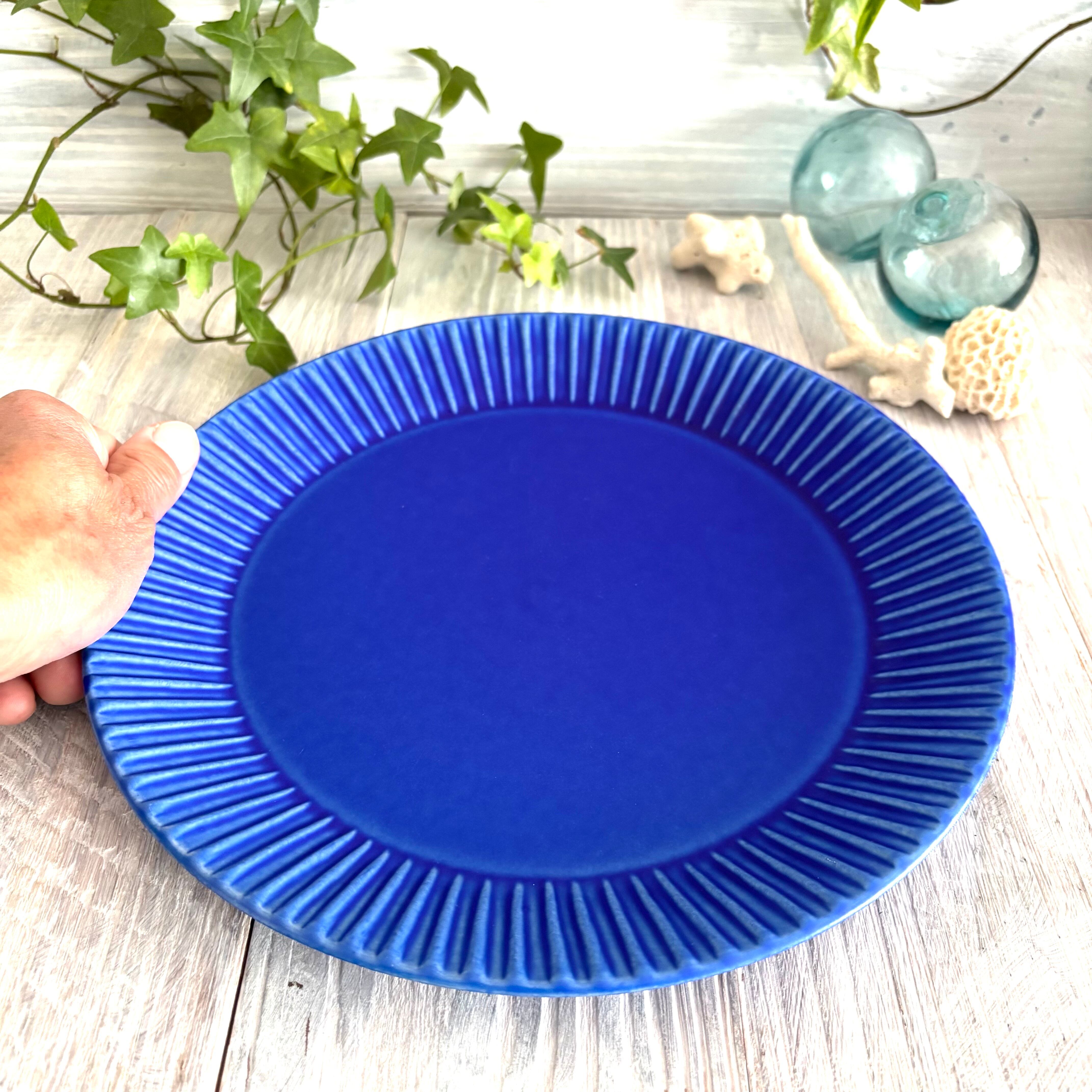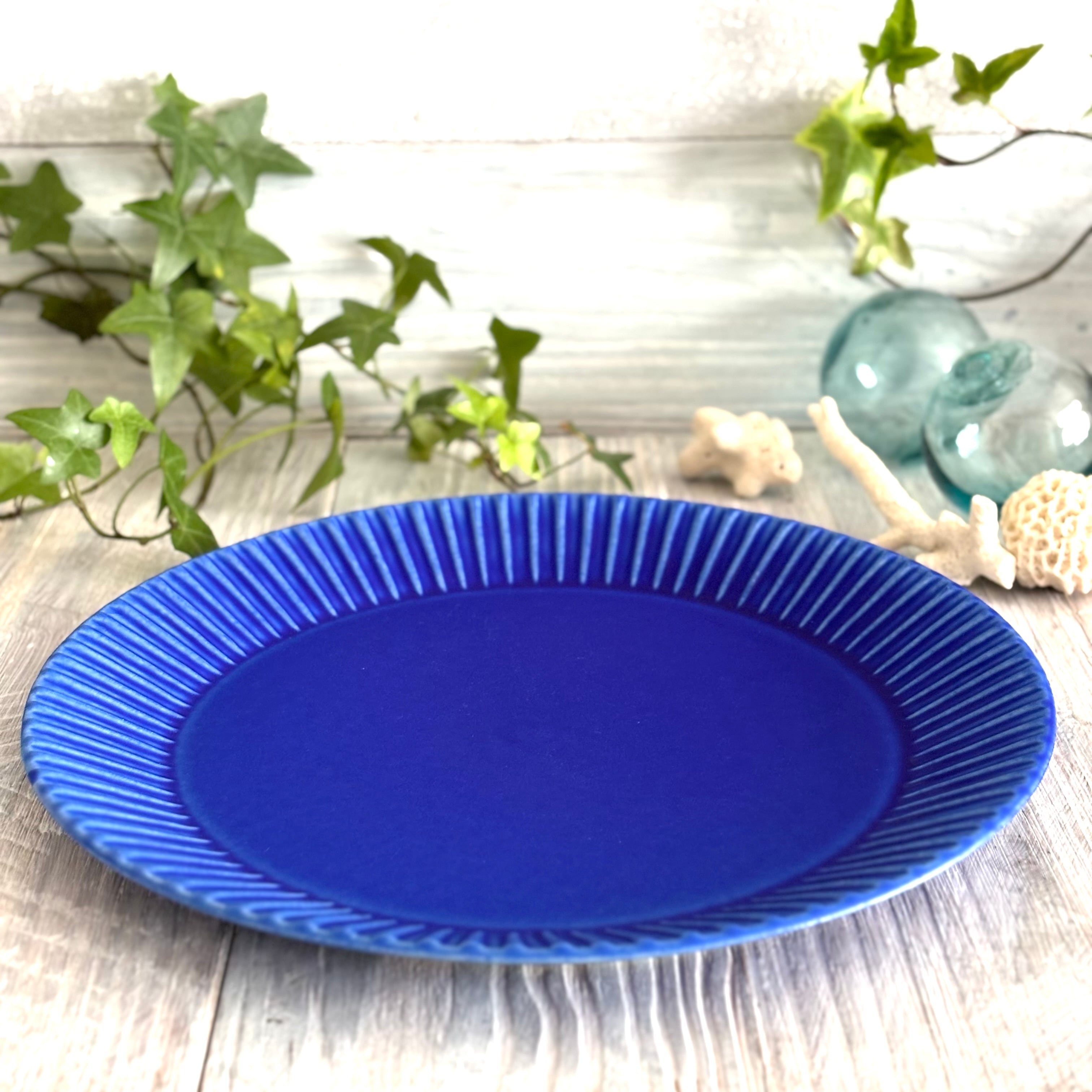 鮮やかなインディゴブルーの大皿です。