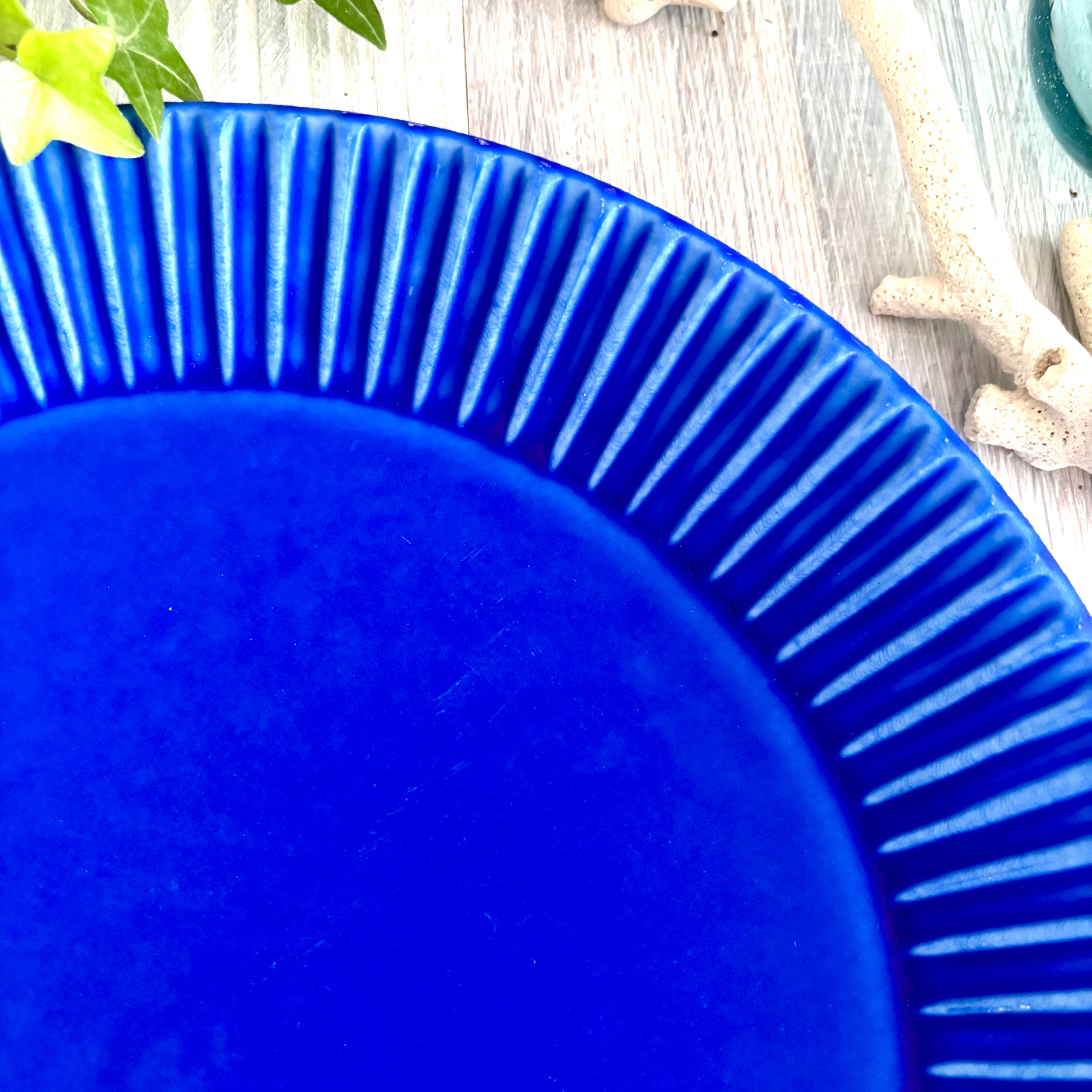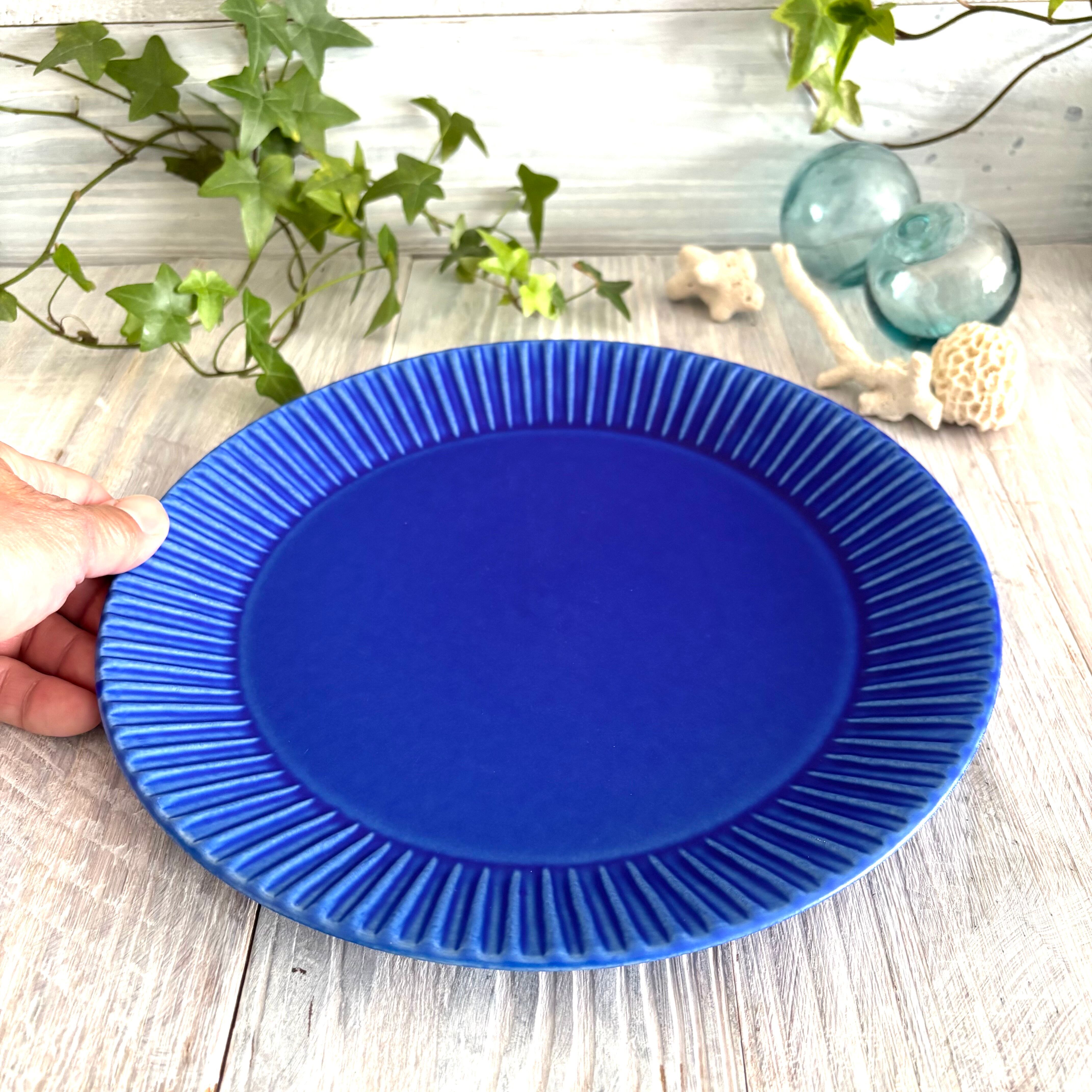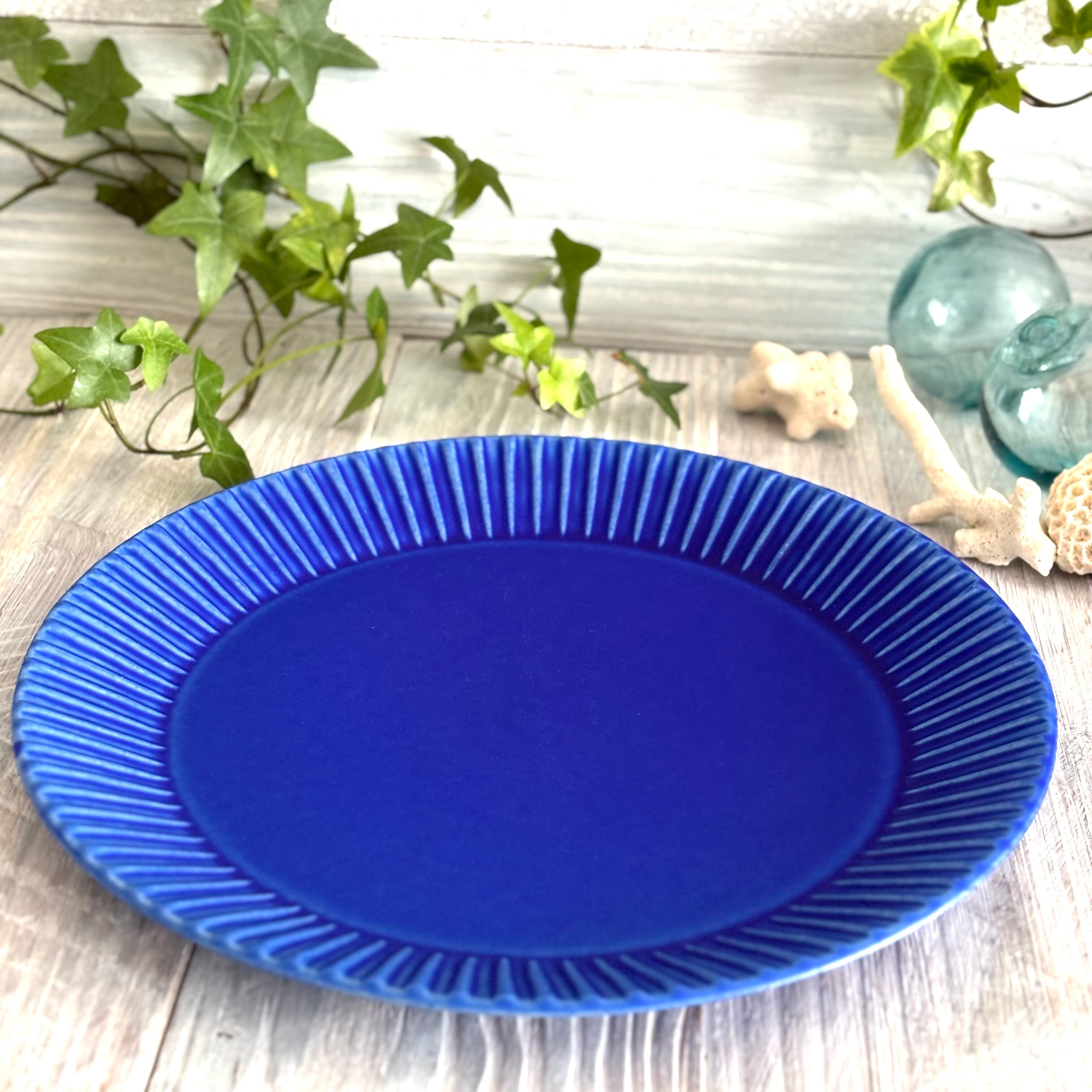 鮮やかなインディゴブルーの大皿です。